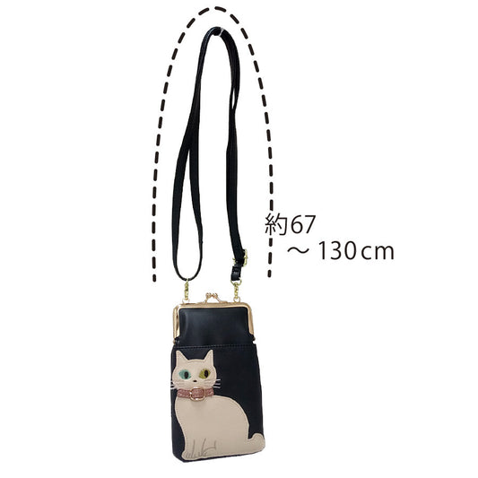 日本JP直送 人氣貓咪圖案搭扣錢包,可雙向斜挎,適合放置智慧型手機{11月30截單;預計10-14 工作天發貨}