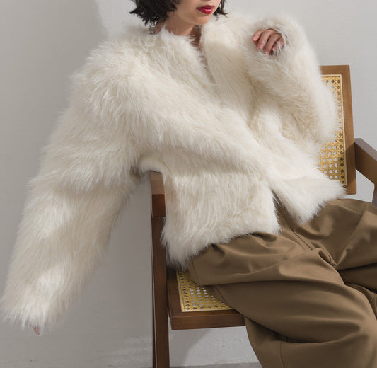 曰本JP直送 長版狐狸毛無領短外套【2025秋冬新品】{11月30截單;預計10-14工作天發貨}