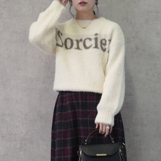 日本JP 直送 2025新品 柔軟羽毛紗線字母logo針織長袖套頭衫/毛衣{1月15截單;預計10-14工作天發貨}