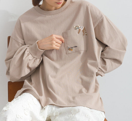 日本JP 直送 純棉針織動物圖案刺繡長袖T卹{1月15截單;預計10-14工作天發貨}