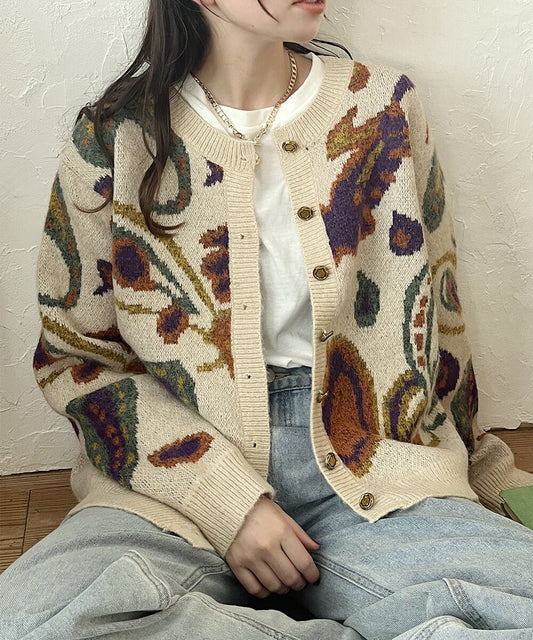 日本JP 直送 2025新品♪】馬海毛佩斯利針織開襟衫{1月15截單;預計10-14工作天發貨}