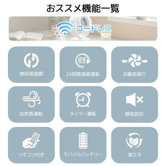 日本JP直送 無線風扇,小巧、安靜、強勁、24小時連續運轉、100種速度設定、自動振盪、遙控、定時器功能 {10月30截單;預計10-14 工作天發貨}