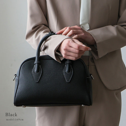 日本JP直送 真皮波士頓包,雙向,帶有裝飾縫線,可愛{11月30截單;預計10-14 工作天發貨}