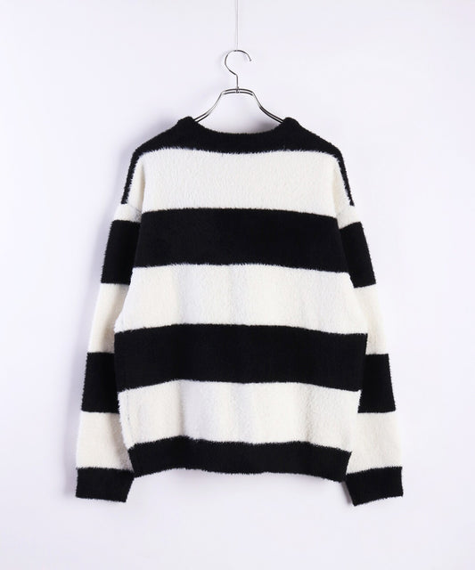 日本JP直送 羽毛紗線寬鬆條紋圓領針織衫 [2025 秋冬款] {11月30截單;預計10-14工作天發貨