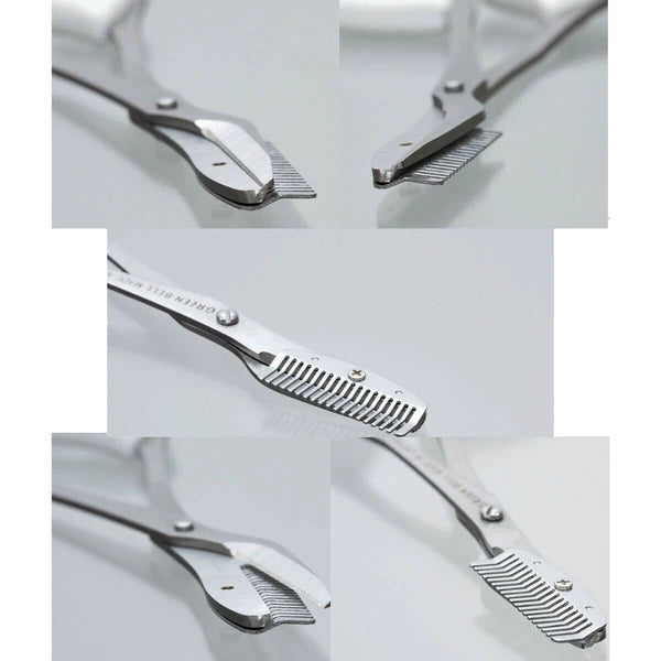 打開剪刀,只需將梳子從眉毛下方向上鏟起然後剪掉即可。