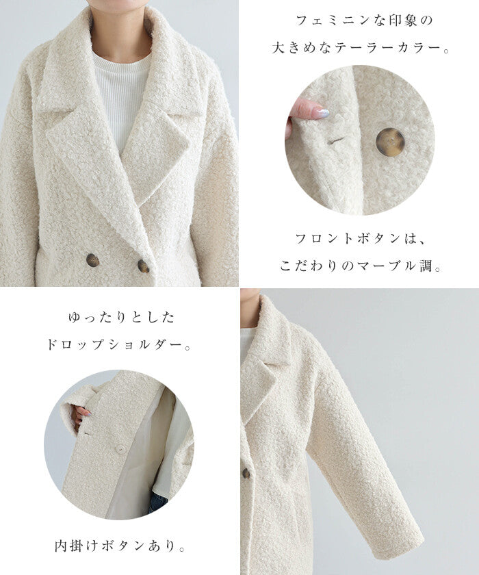 採用柔軟捲曲的仿羊毛製成, 溫暖親膚,具有寬鬆的輪廓和寬大的剪裁衣領,營造出女性化、精緻的外觀。中長款覆蓋臀部,打造流線型外觀。您可以選擇格紋圖案作為時尚點綴,也可以選擇簡單百搭的純色。本季推薦的外套易於穿著,可與任何服裝完美搭配。它配有一個方便的口袋。*有襯裡*請注意,由於拍攝時的光線條件以及您的顯示器或電腦設置,實際產品顏色可能與圖片略有不同。請在購買前註意這一點。