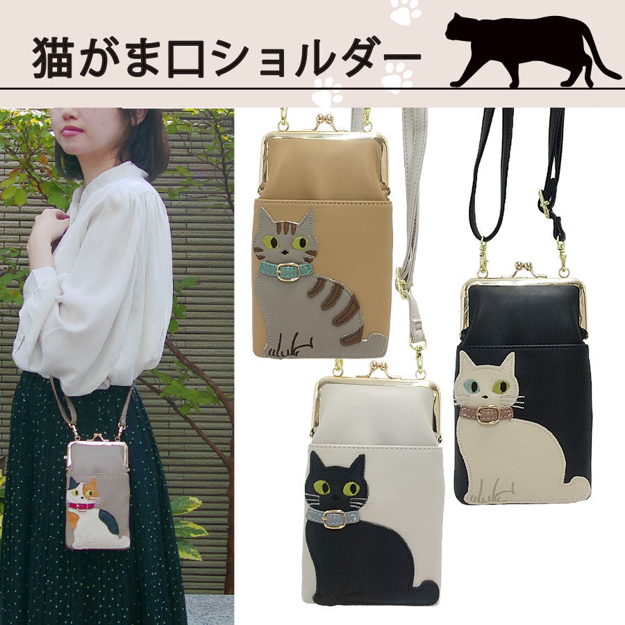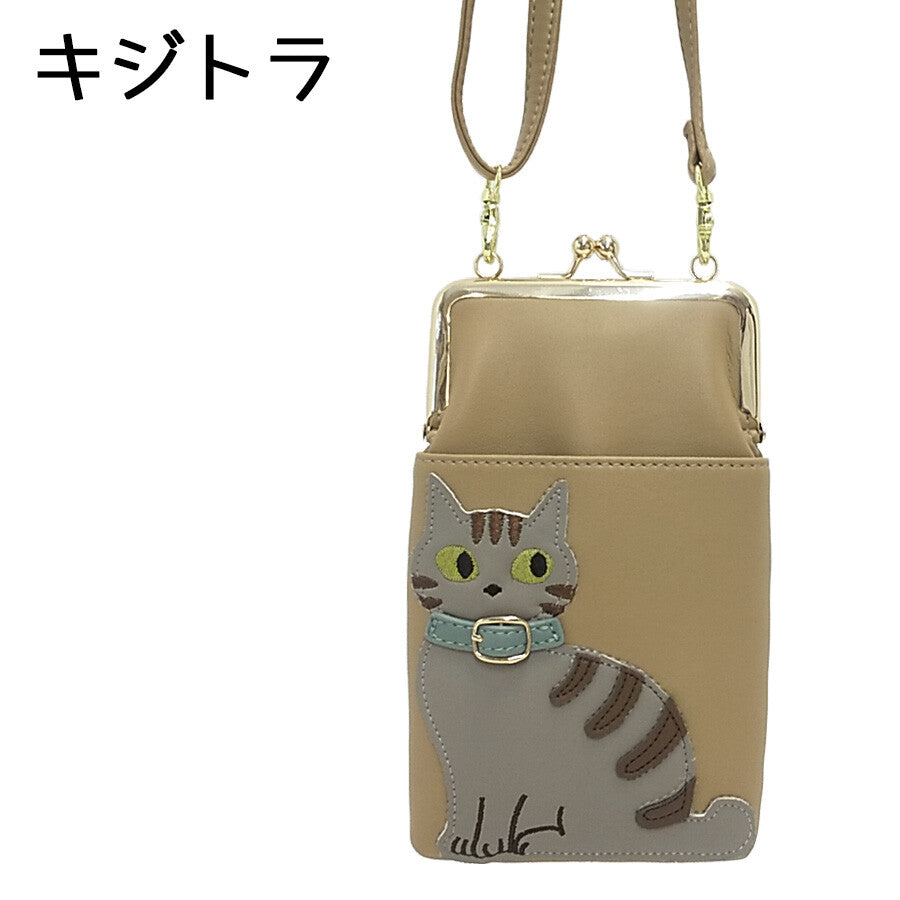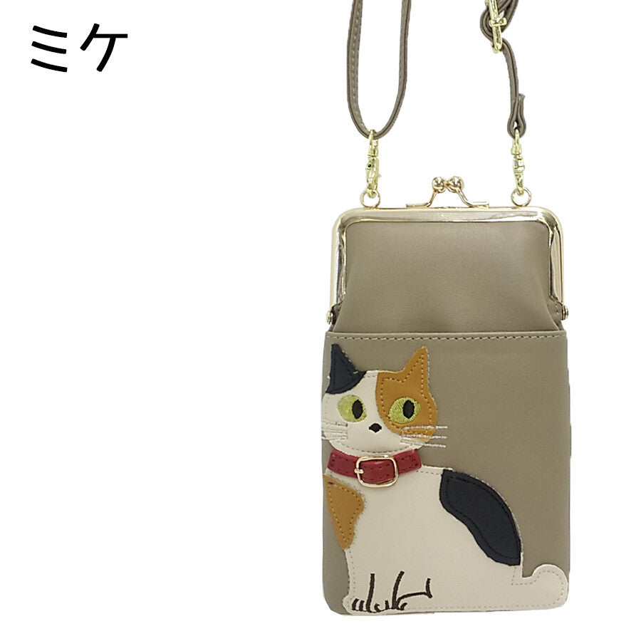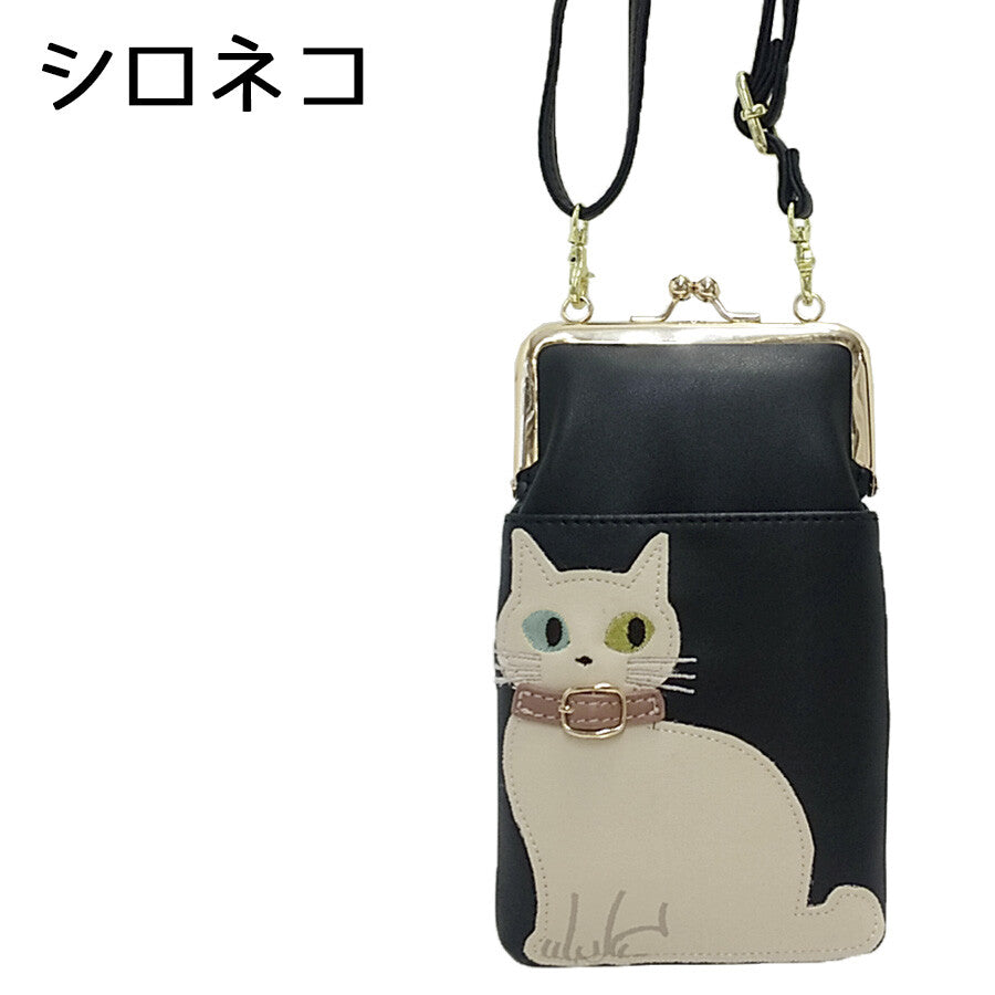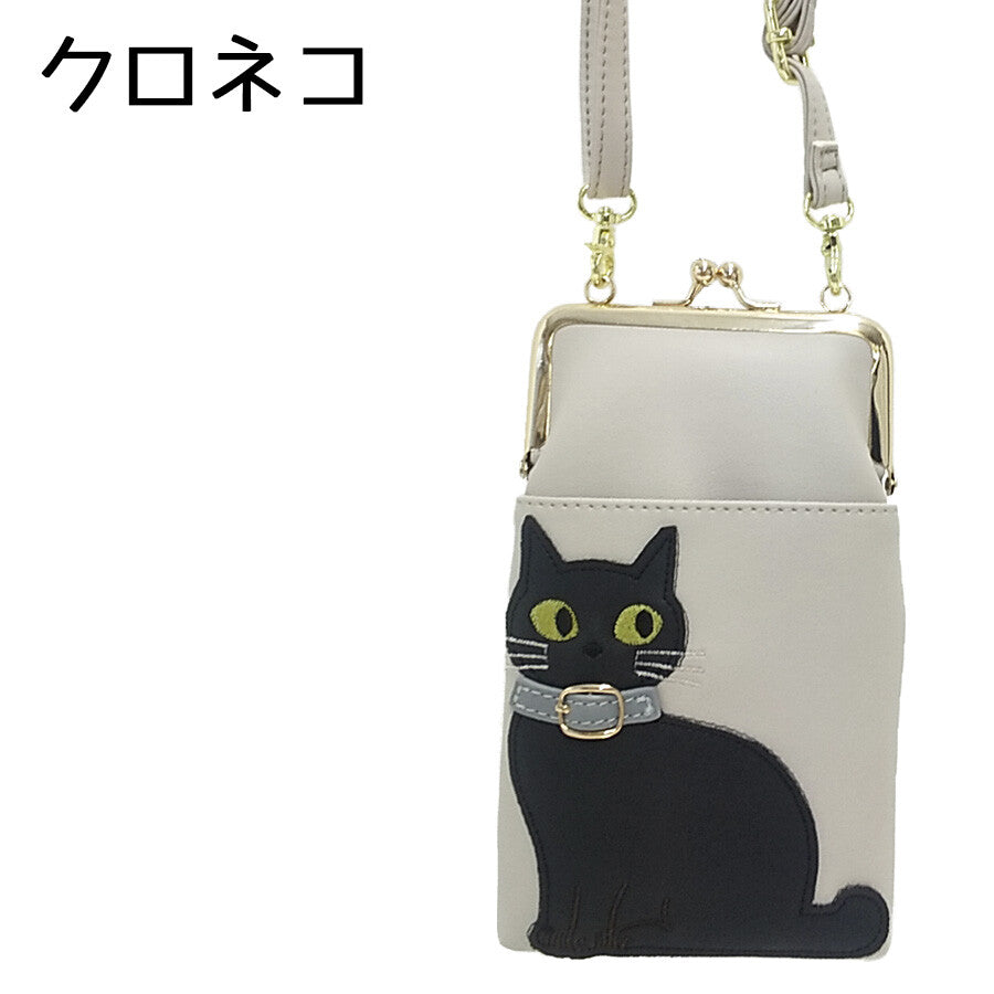 日本JP直送 人氣貓咪圖案搭扣錢包,可雙向斜挎,適合放置智慧型手機{10月30截單;預計10-14 工作天發貨}