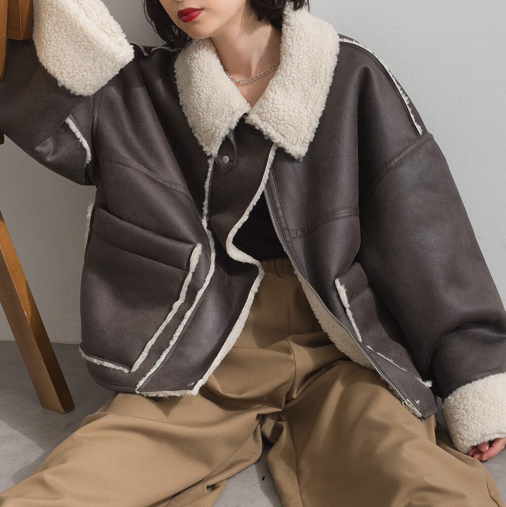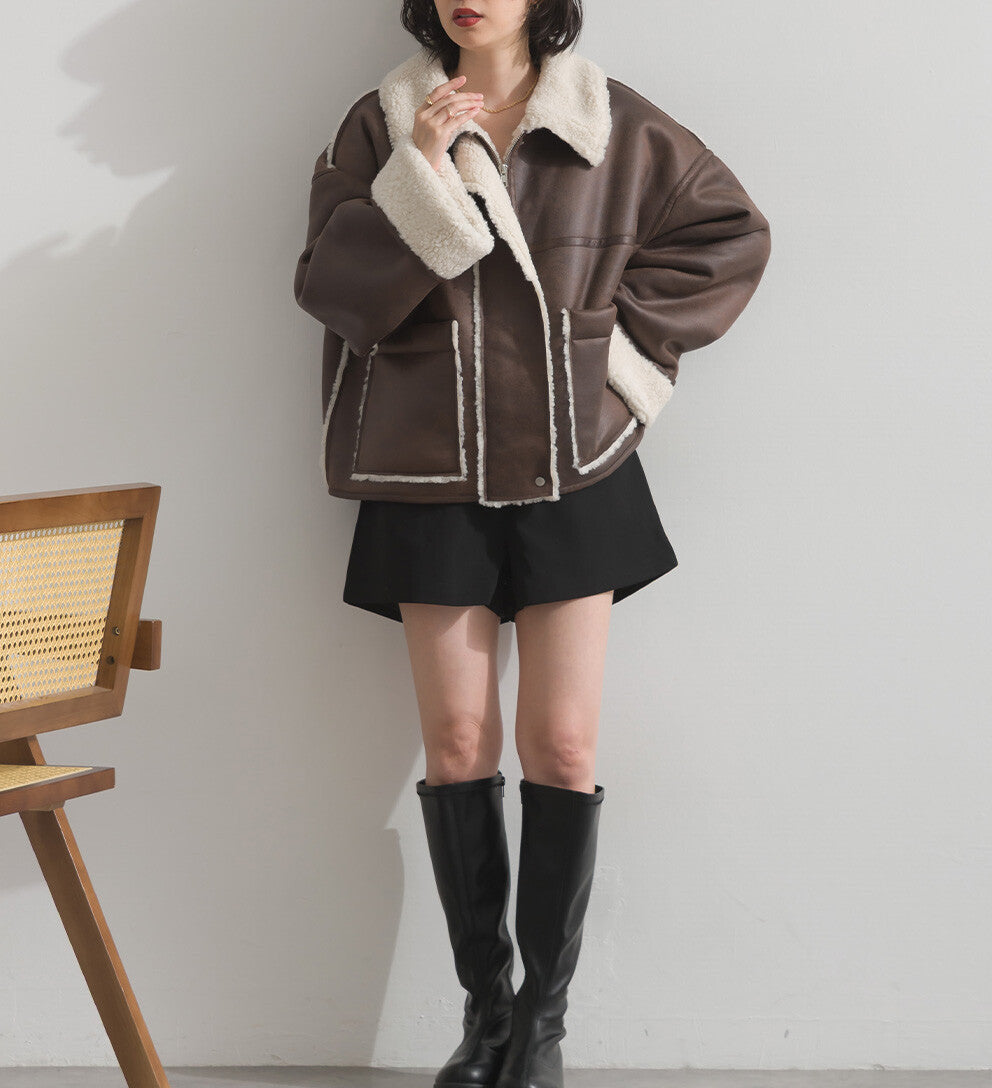 曰本JP直送 仿羊毛粘合夾克,帶羊毛襯裡 [2025 年秋冬新品] {11月30截單;預計10-14工作天發貨}