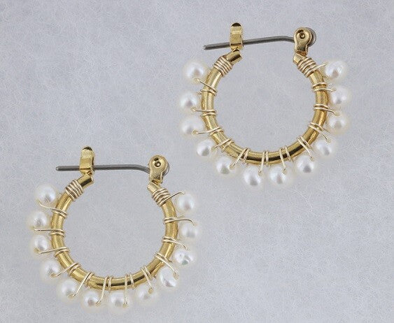 這款耳環以淡水珍珠和金屬的優雅組合為特色。不規則的淡水珍珠以其微妙的形狀和色彩,營造出精緻的印象。