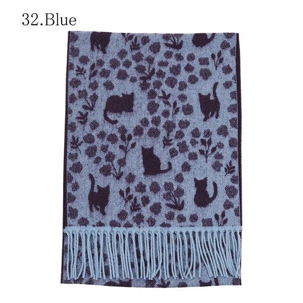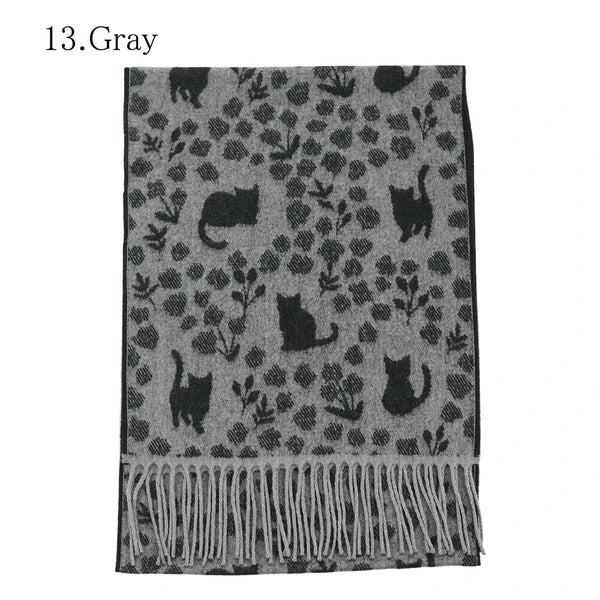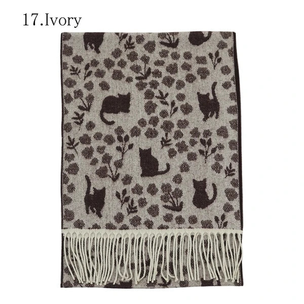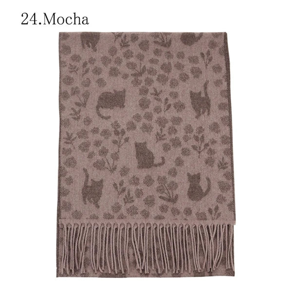 曰本JP直送 日本製 花貓印花窄披肩 發熱保暖防靜電圍巾 {11月30截單;預計10-14工作天發貨}