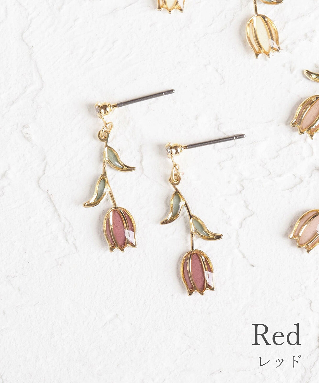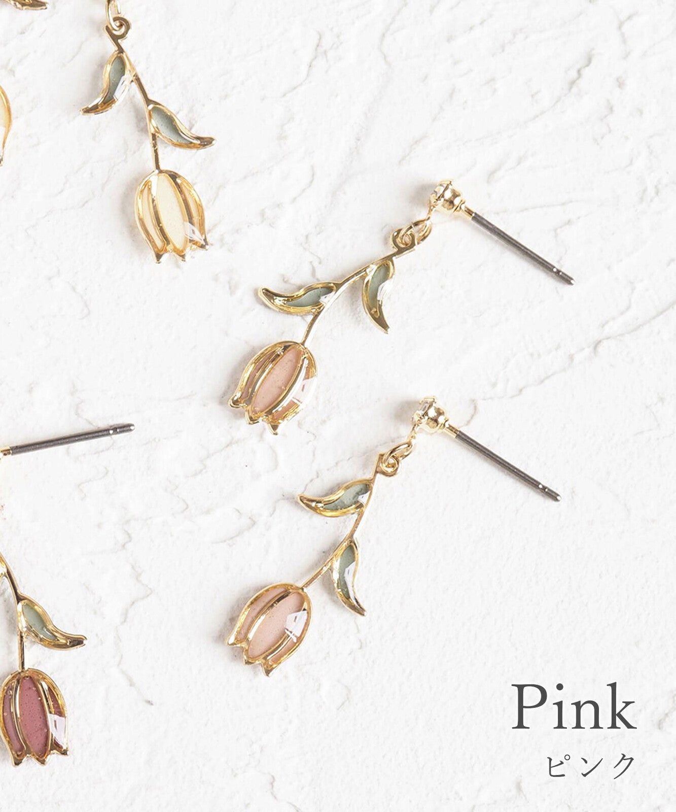 可愛精緻的鬱金香圖案,色彩細膩柔和。搖曳的鬱金香,低調奪目。這款耳環,與明媚的春日完美搭配。