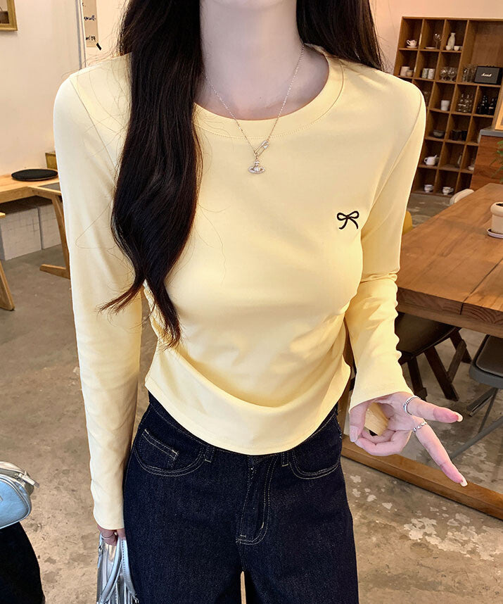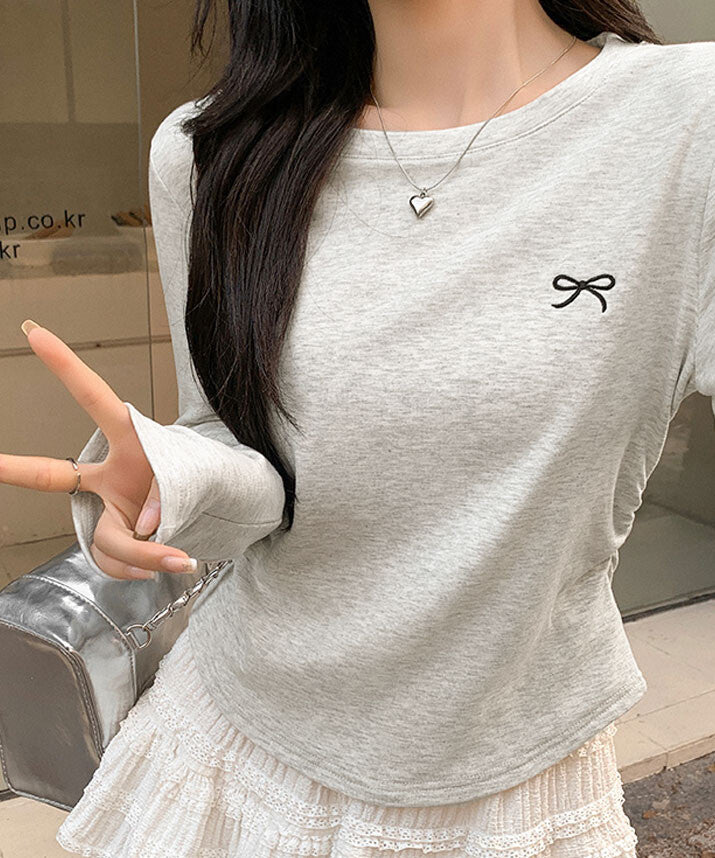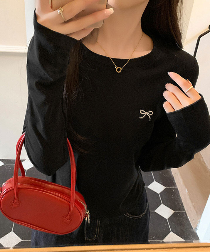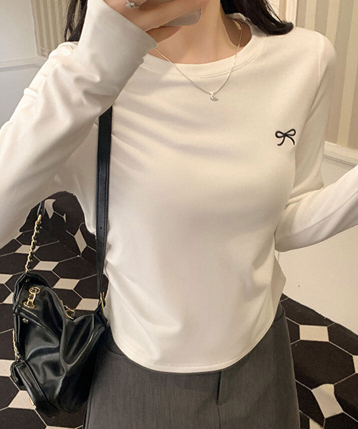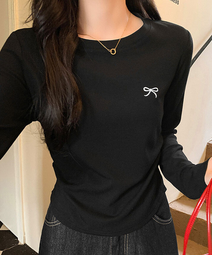 日本JP直送 上衣《蝴蝶結刺繡圓領上衣 4色選配》直送 {11月30截單;預計10-14工作天發貨}