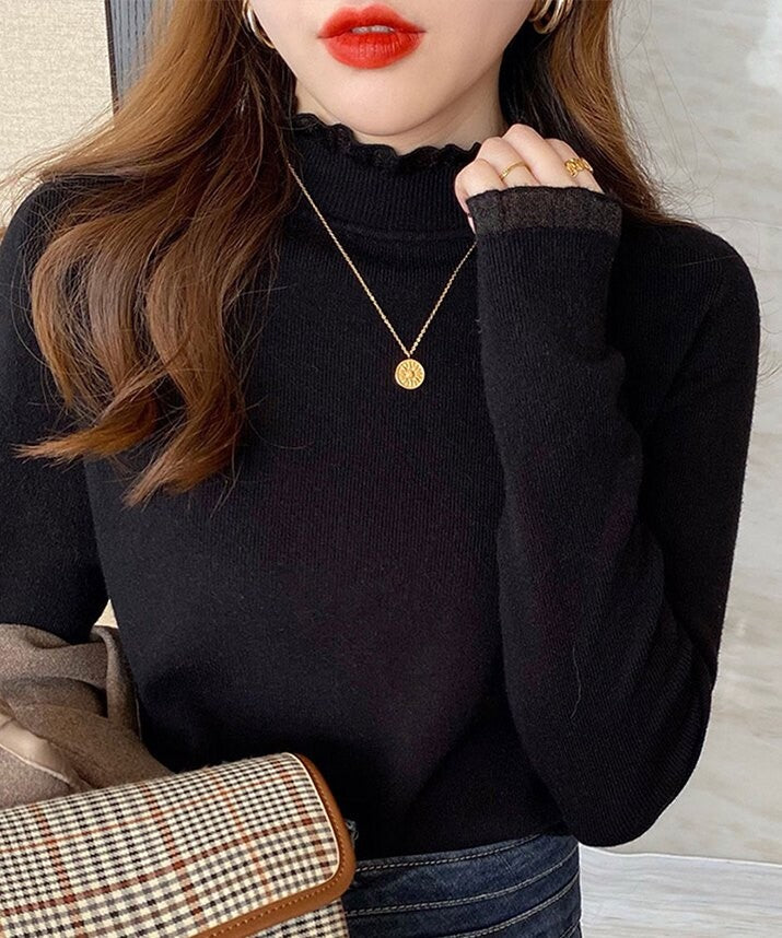 日本JP直送 針織《高領荷葉邊針織上衣,7色可選》{11月30截單;預計10-14工作天發貨}