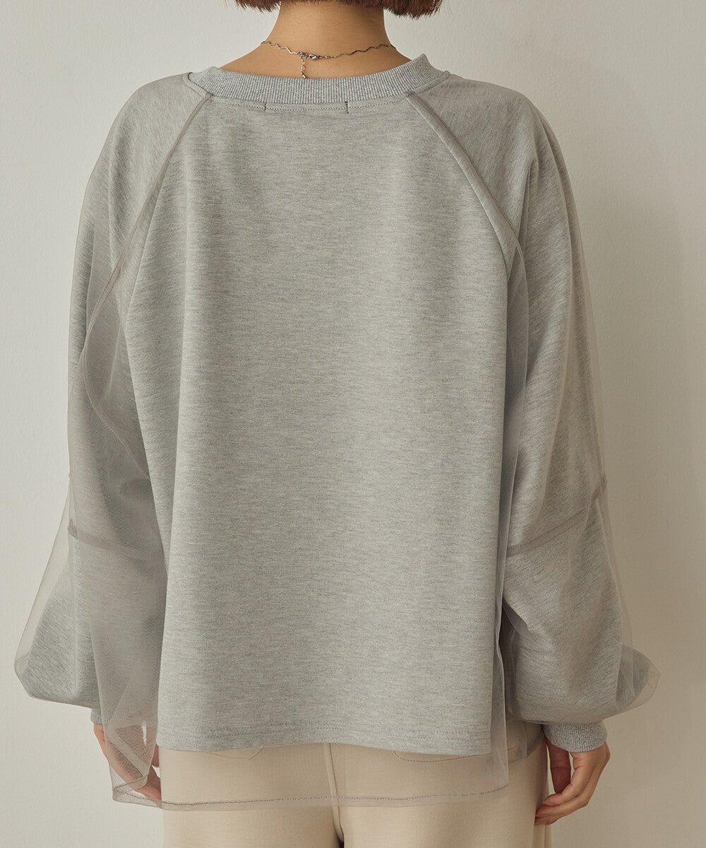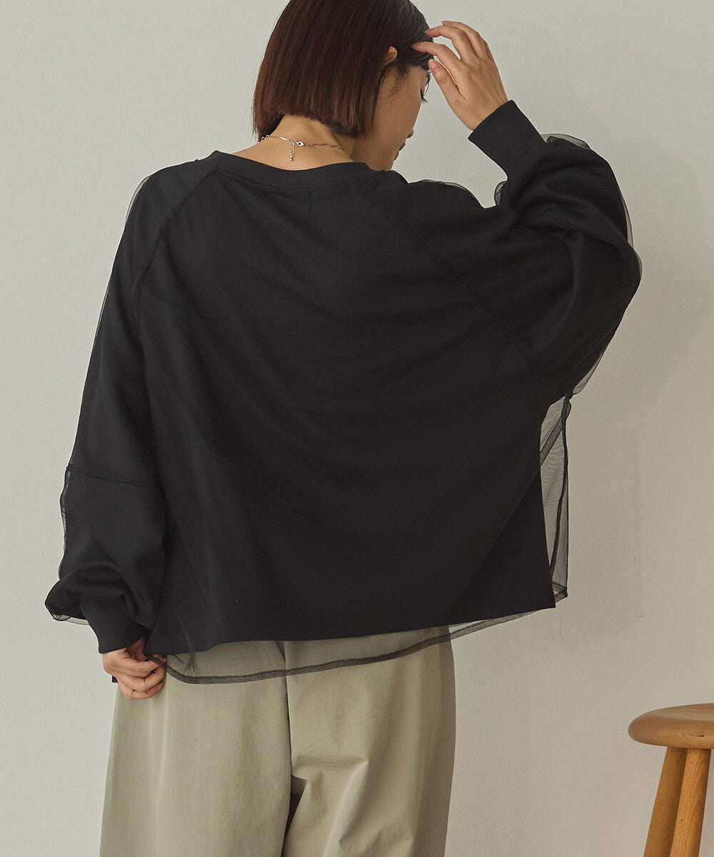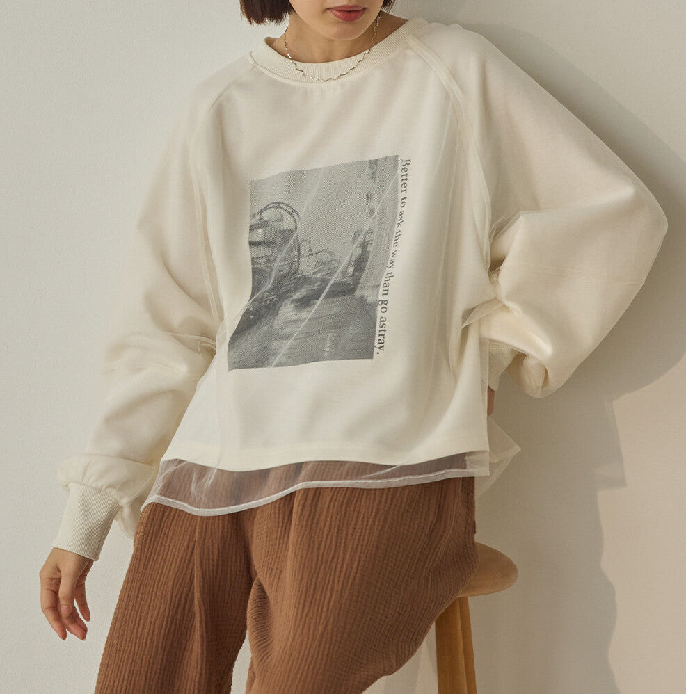 曰本JP直送 紗蕾絲層疊蓬鬆袖印花套頭衫{11月30截單;預計10-14工作天發貨}