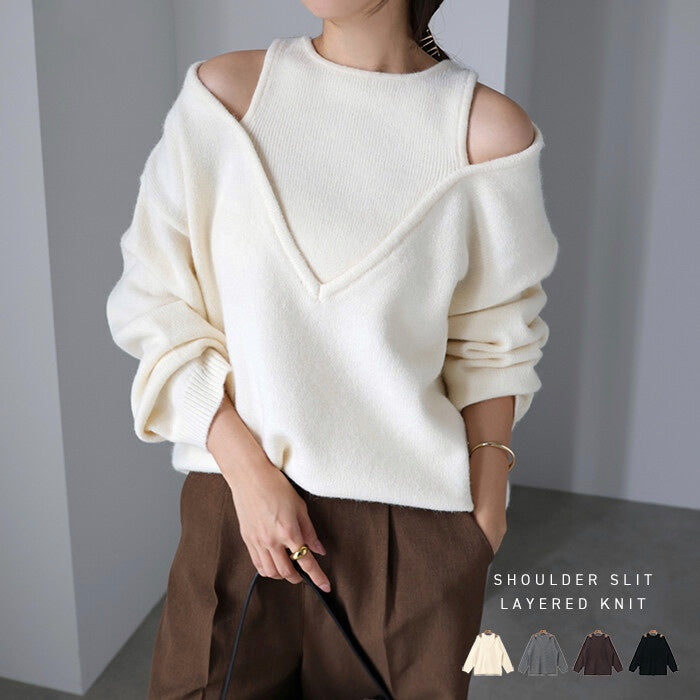 曰本JP直送 肩部開衩的多層針織上衣{11月30截單;預計10-14工作天發貨}
