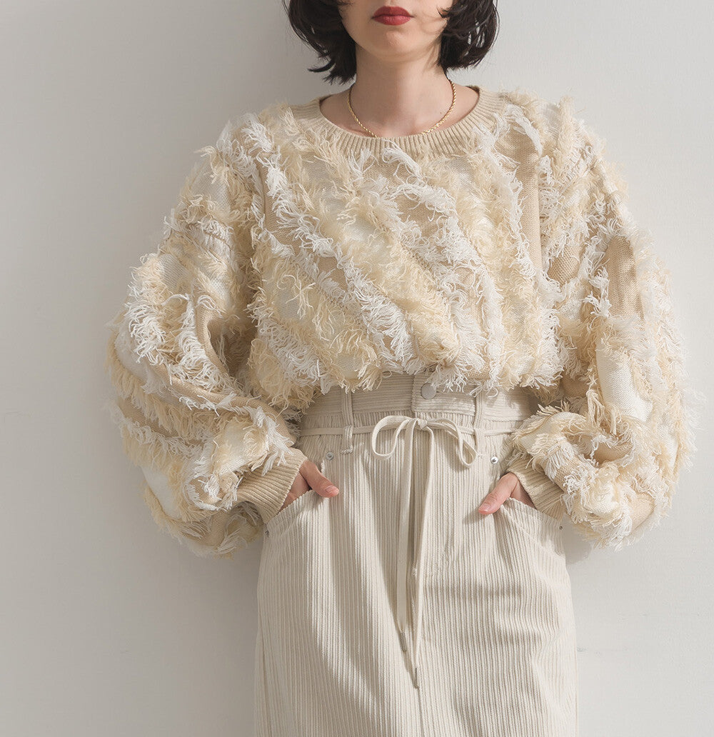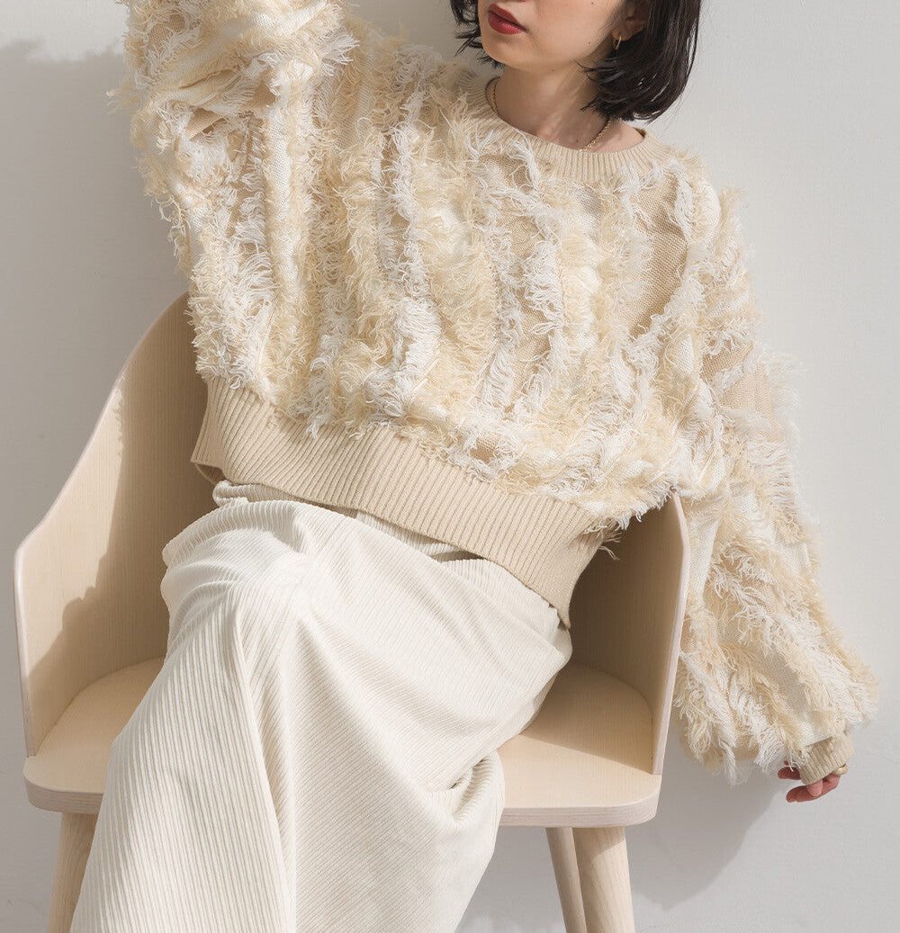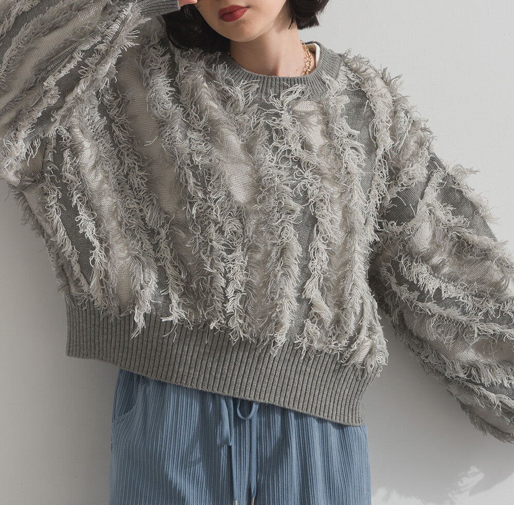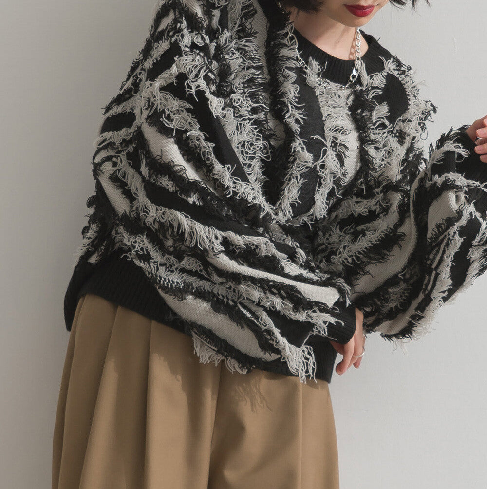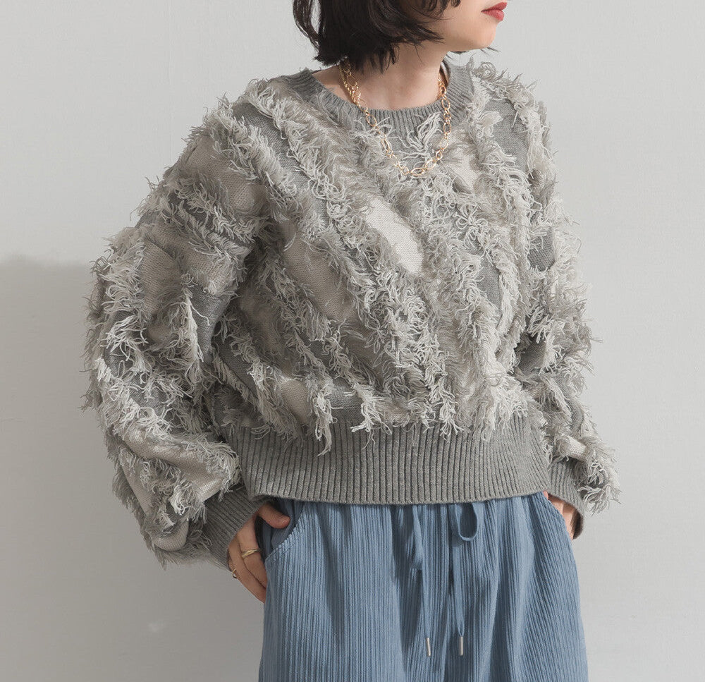 曰本JP直送 馬海毛觸感流蘇提花針織套頭衫 [2025 秋冬新品] {11月30截單;預計10-14工作天發貨}