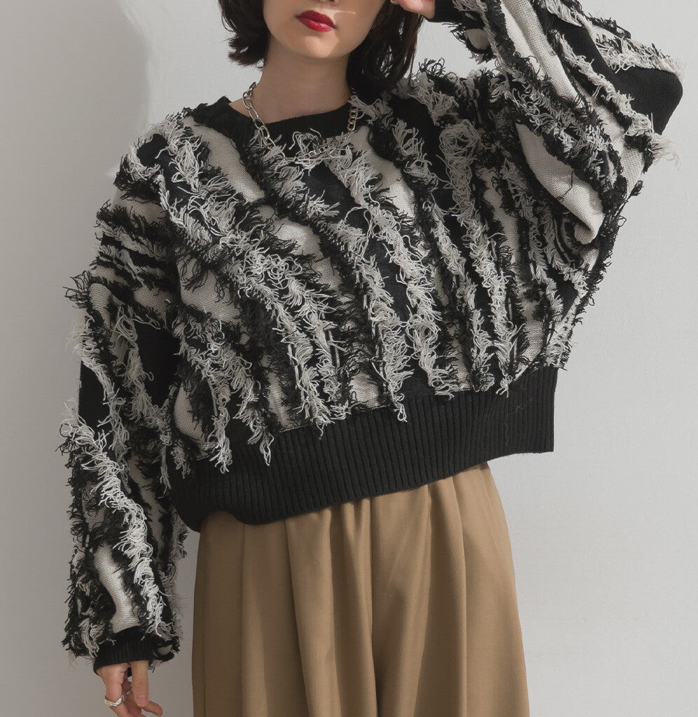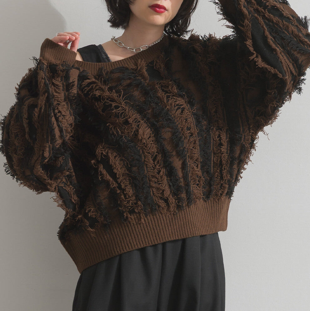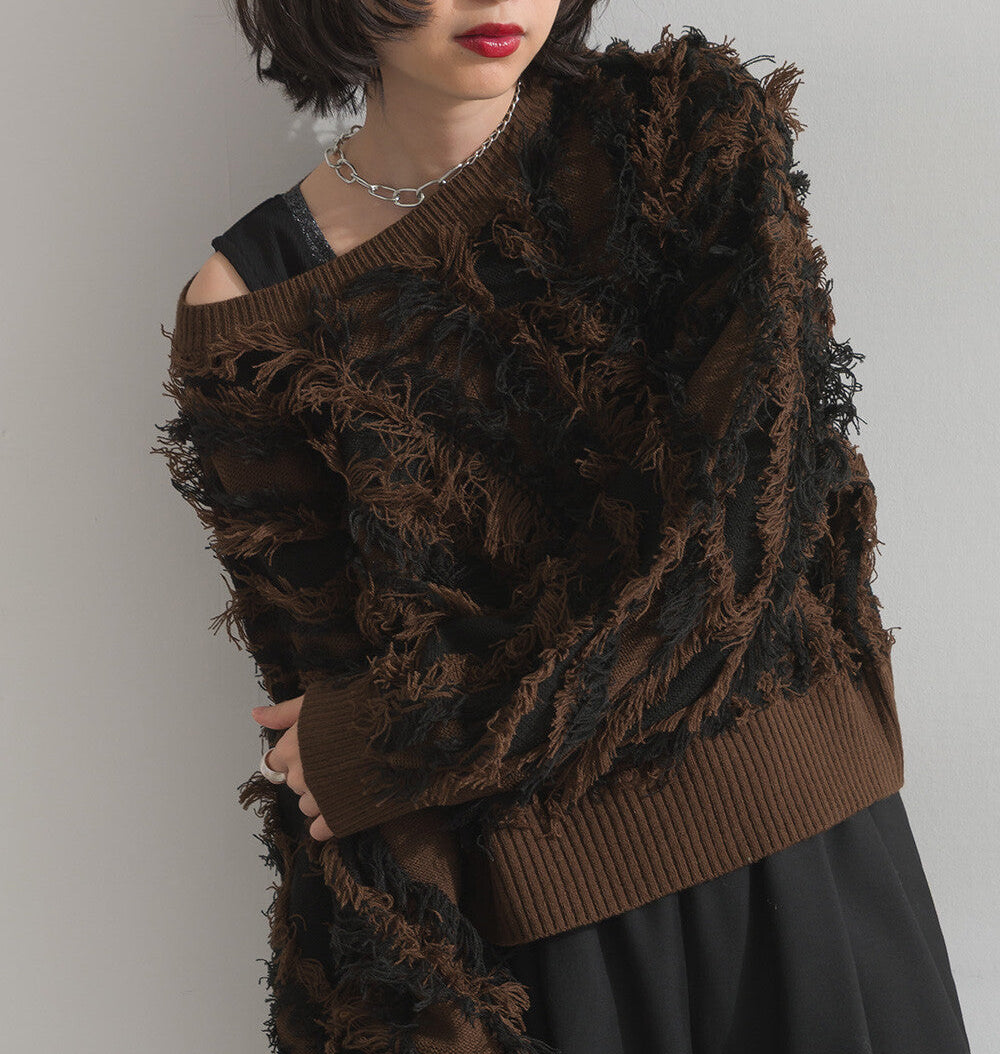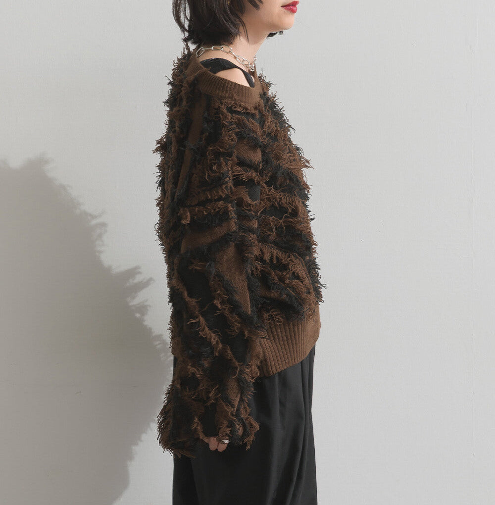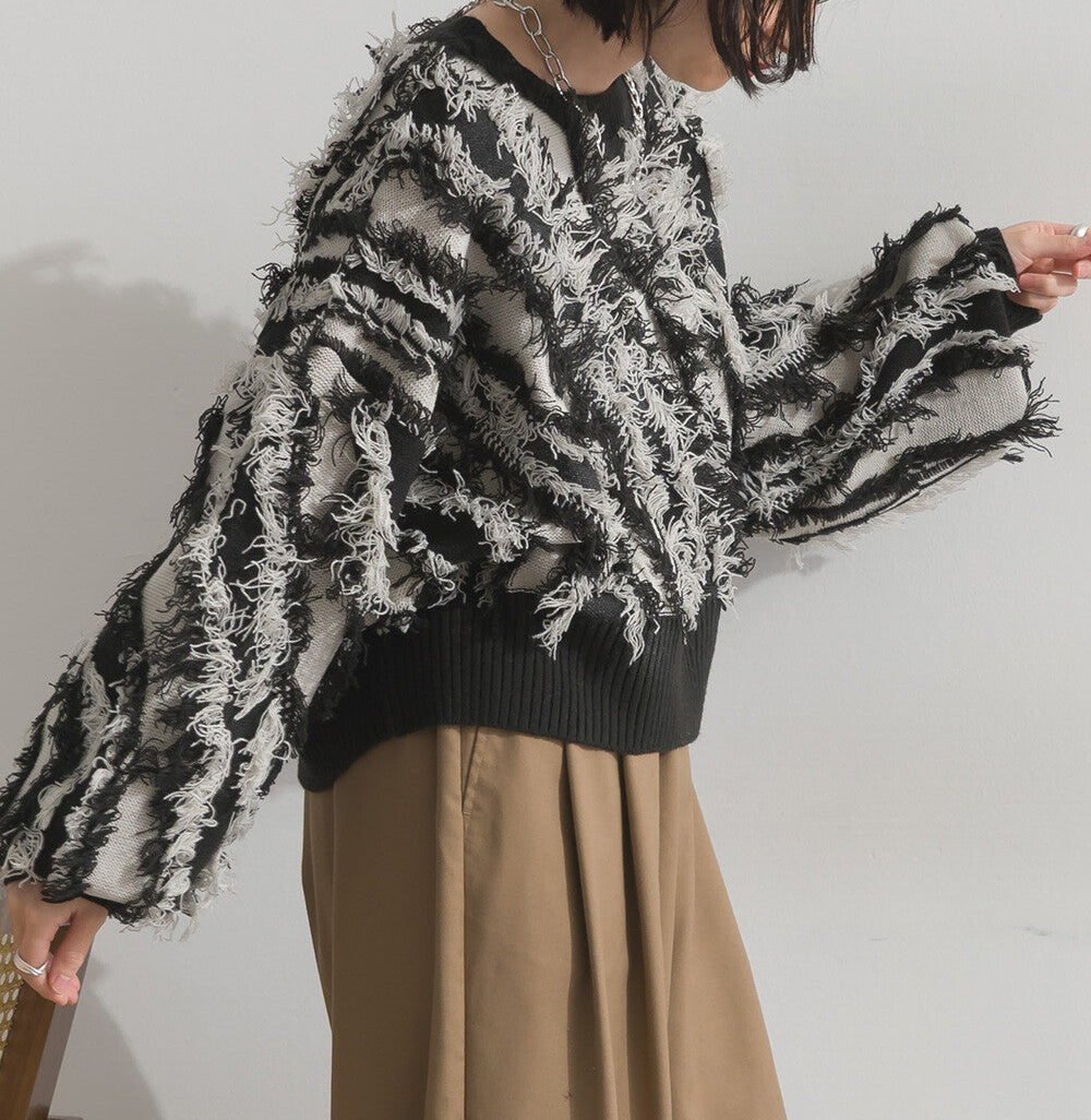 曰本JP直送 馬海毛觸感流蘇提花針織套頭衫 [2025 秋冬新品] {11月30截單;預計10-14工作天發貨}
