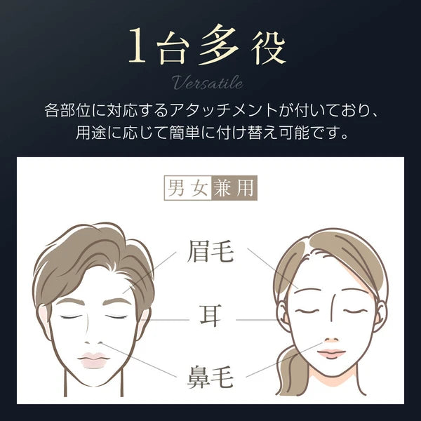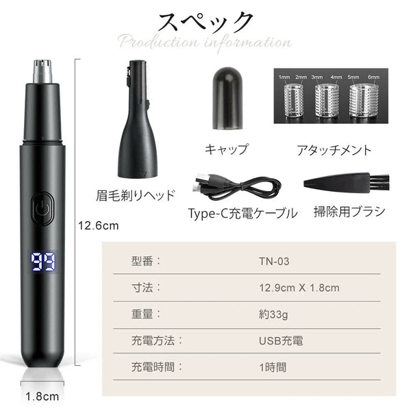 日本JP直送 鼻毛修剪器,禮儀修剪器,男女通用,USB 充電,多功能,Type-C,電池電量顯示,一鍵操作 {10月30截單;預計10-14 工作天發貨}