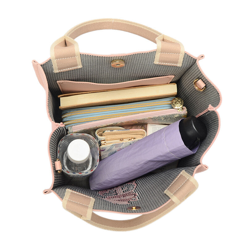 它既可以手提,也可以用附帶的肩帶單肩背,