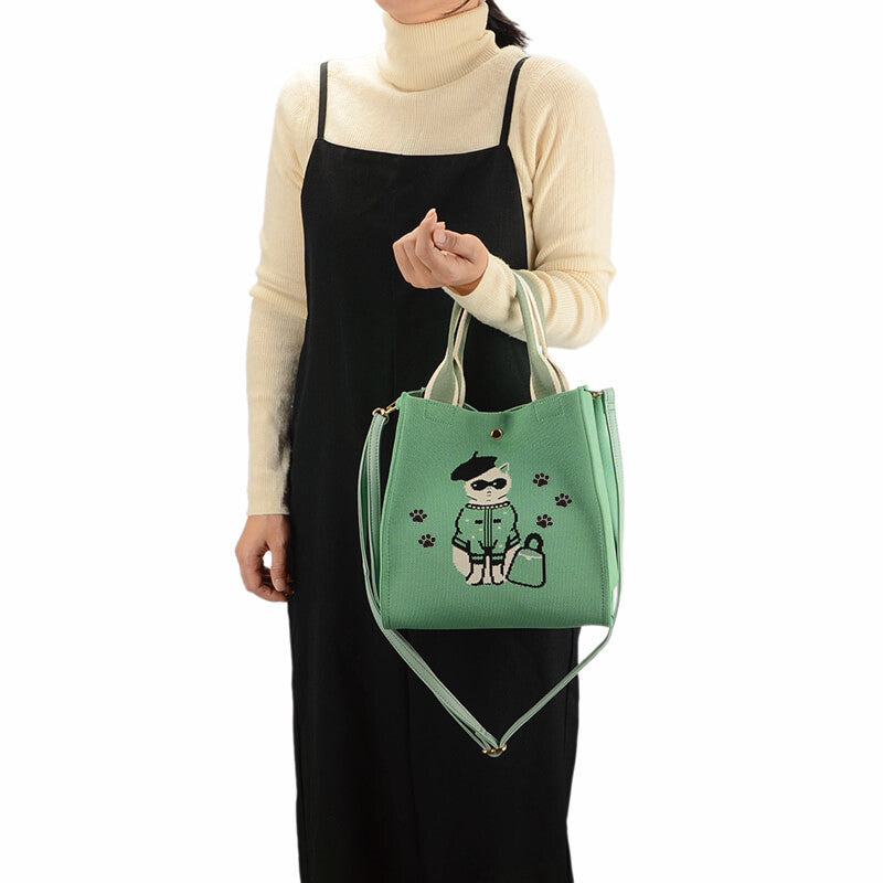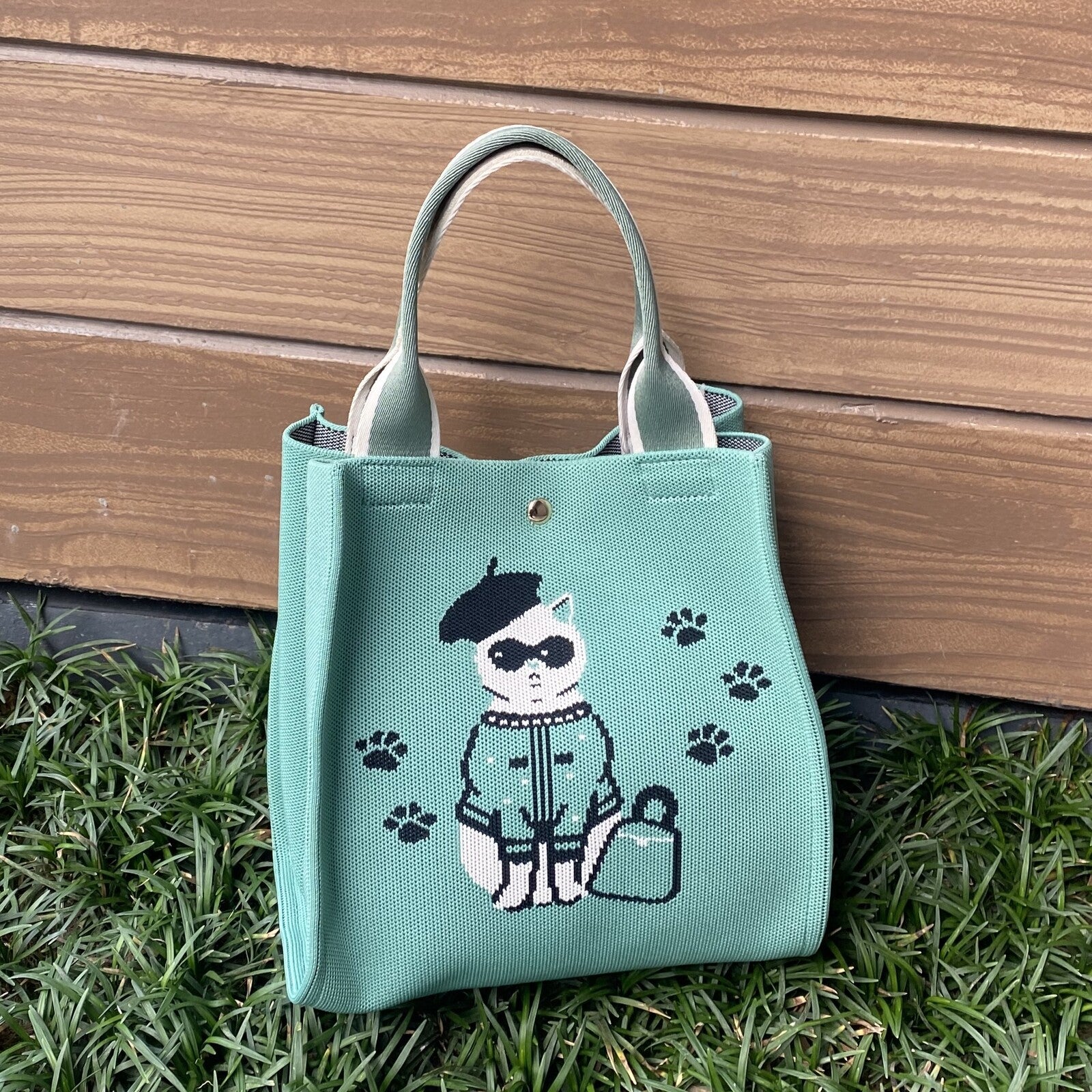 #針織包 / #手袋 / #女士包 / #貓咪印花/ #愛貓人士 / #單肩包 / #輕便 / #秋冬 / #兩用