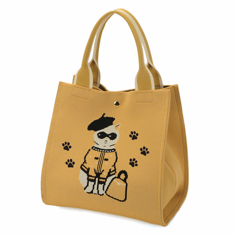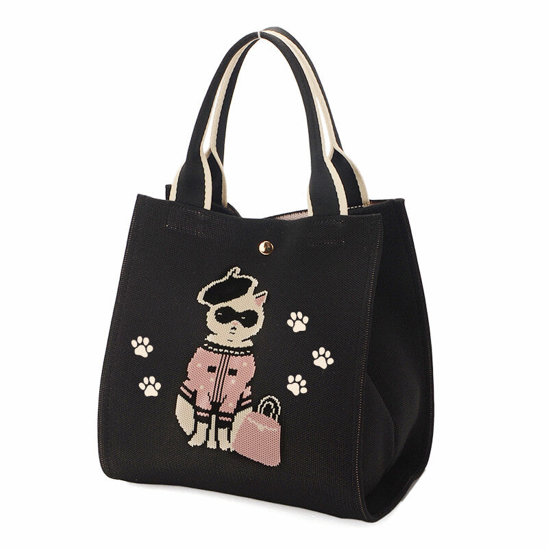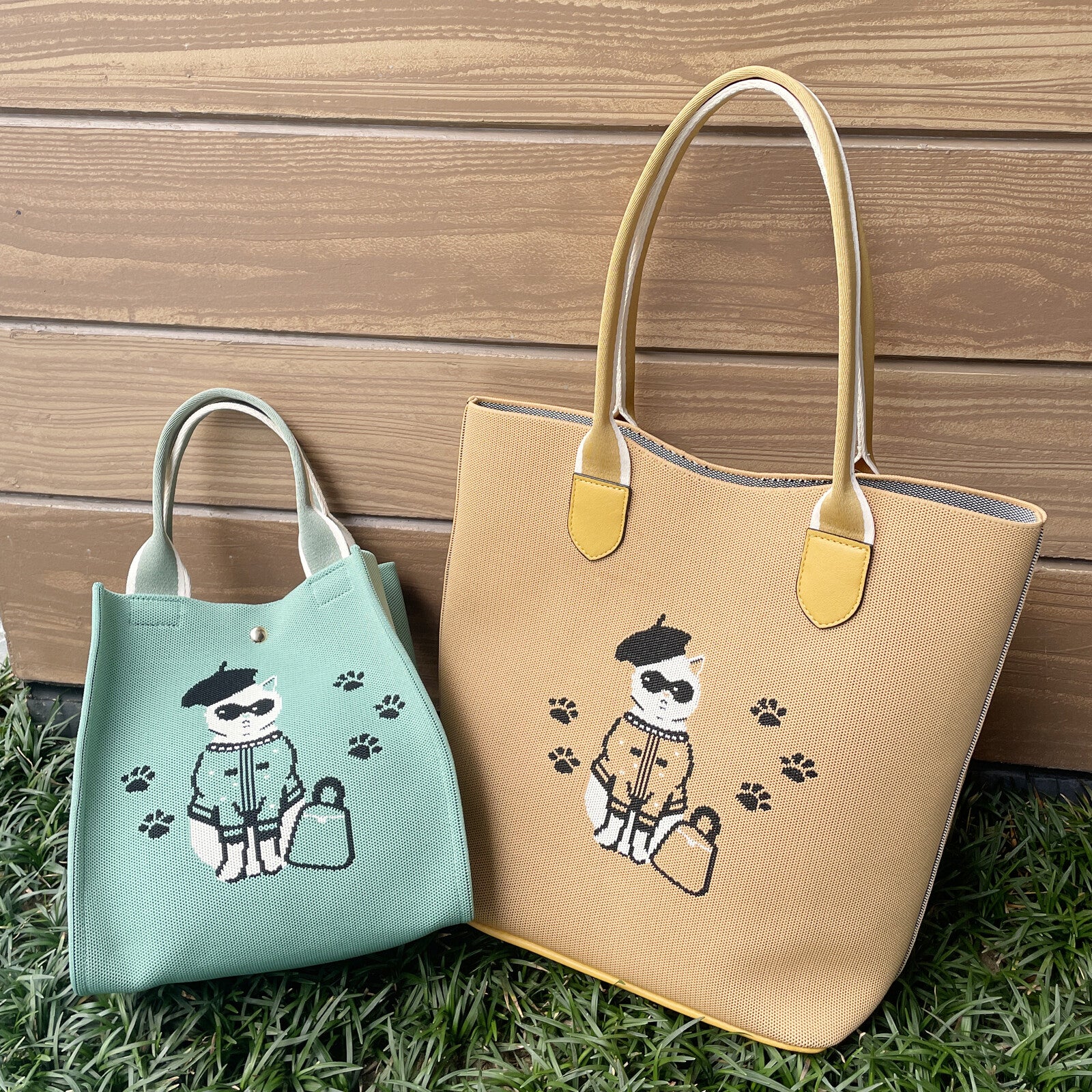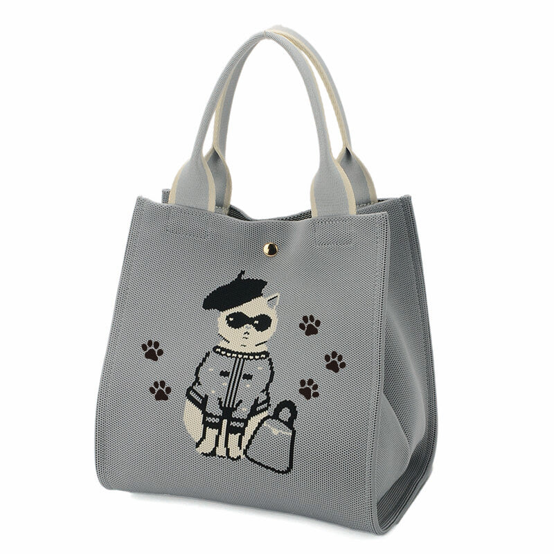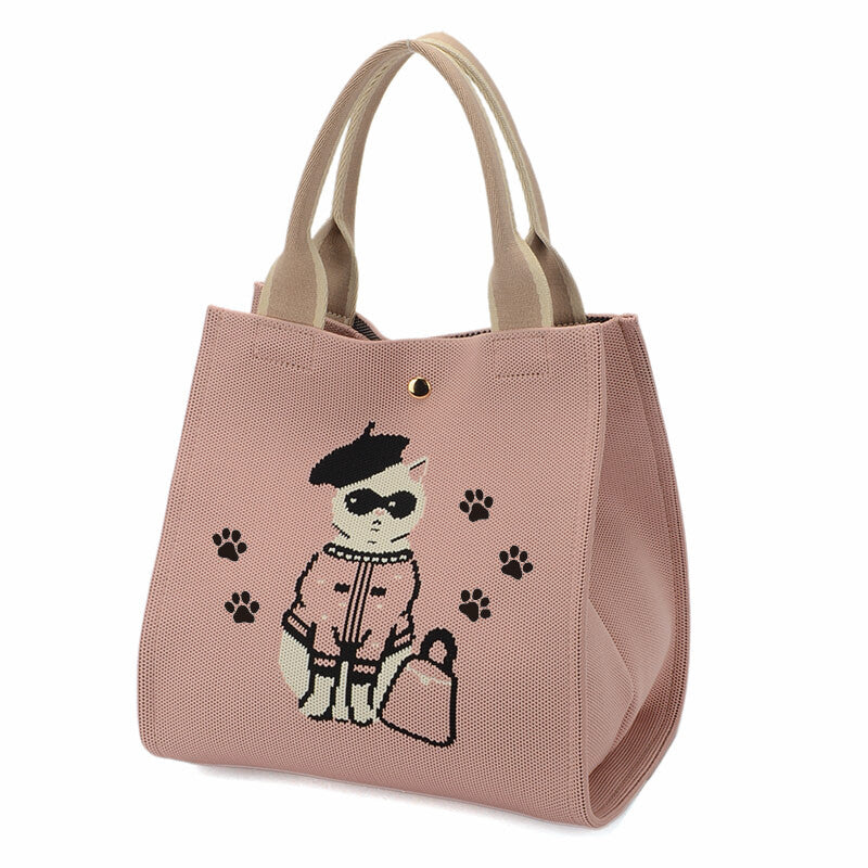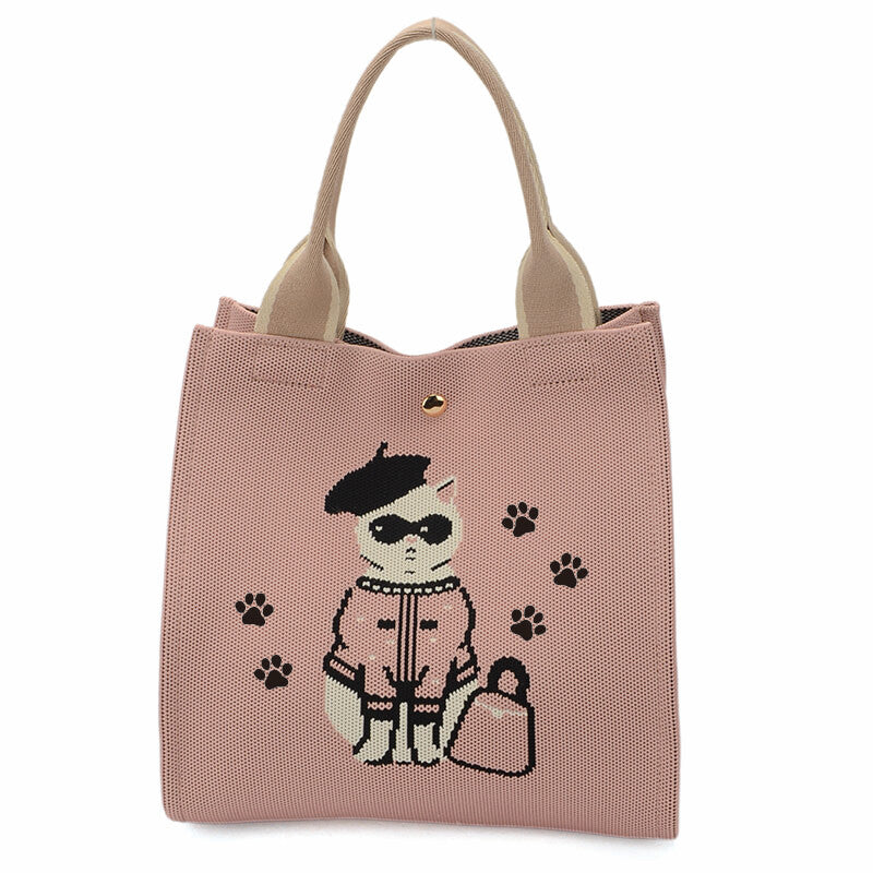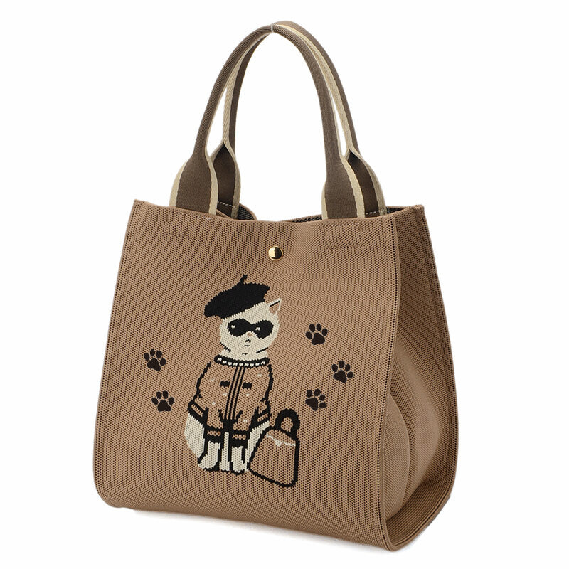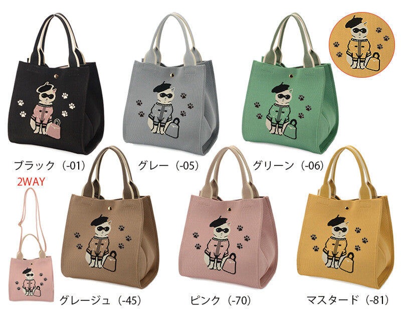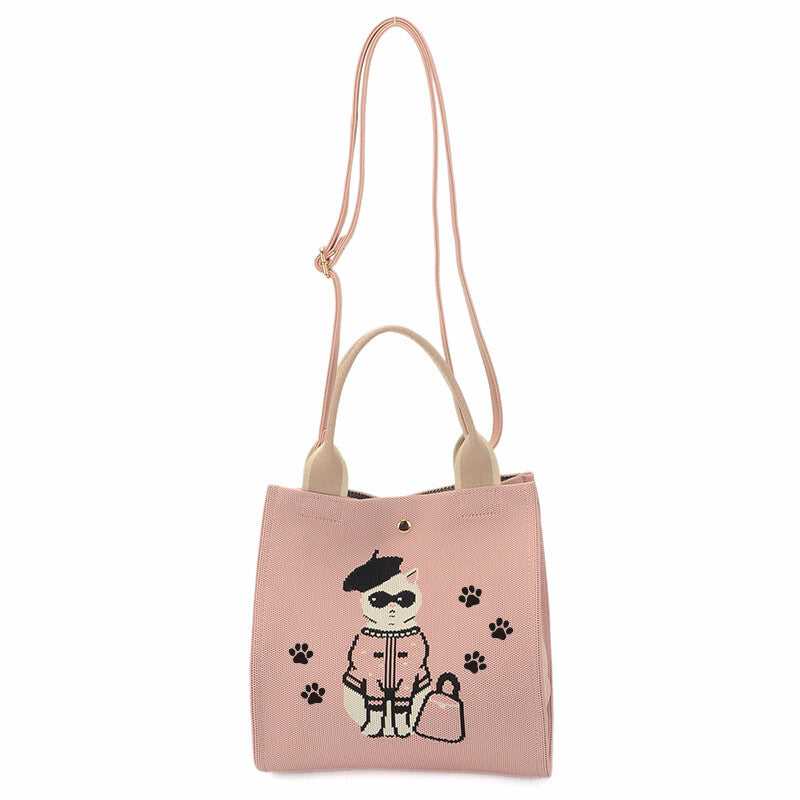 日本JP 直送 【2025新品】時尚貓咪印花針織兩用包 <Minyu> 單肩包 推薦{11月30截單;預計10-14工作天發貨}