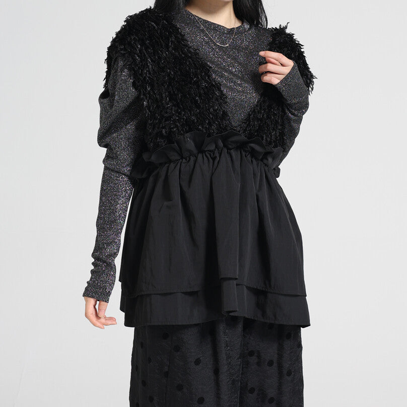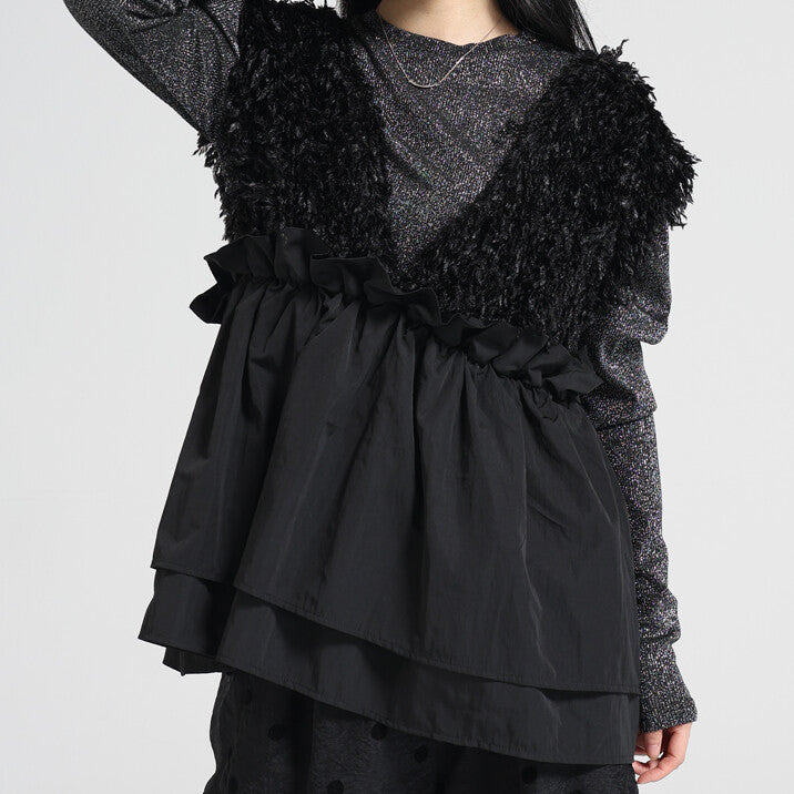 引人注目的背心,正面有人造毛皮,下擺有分層。