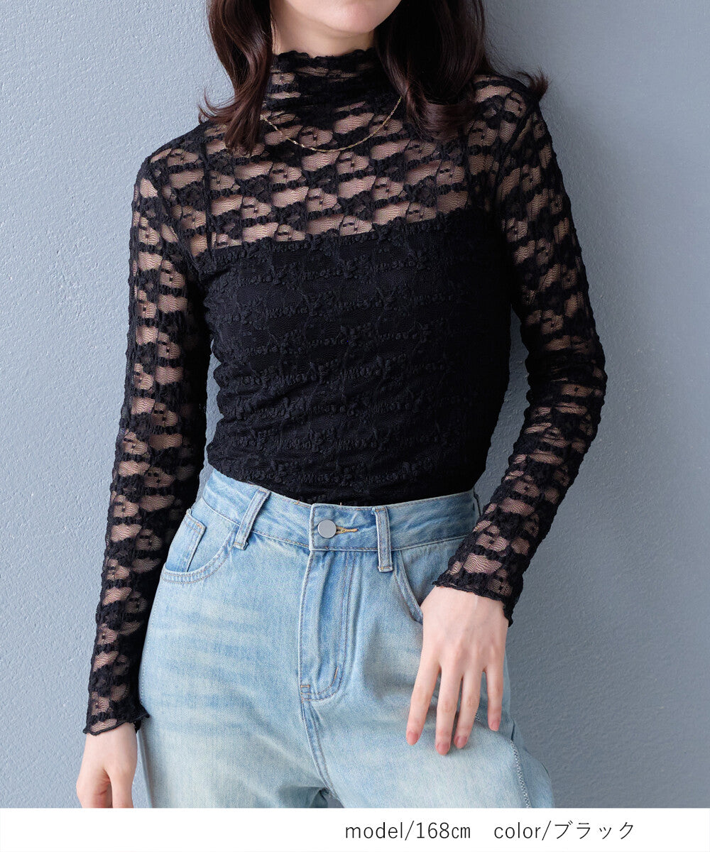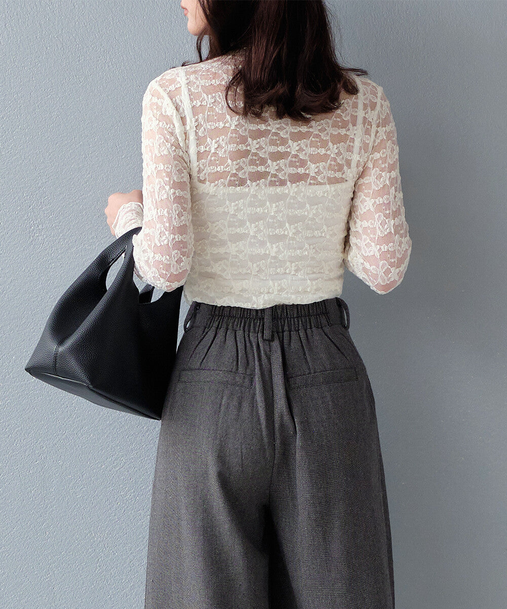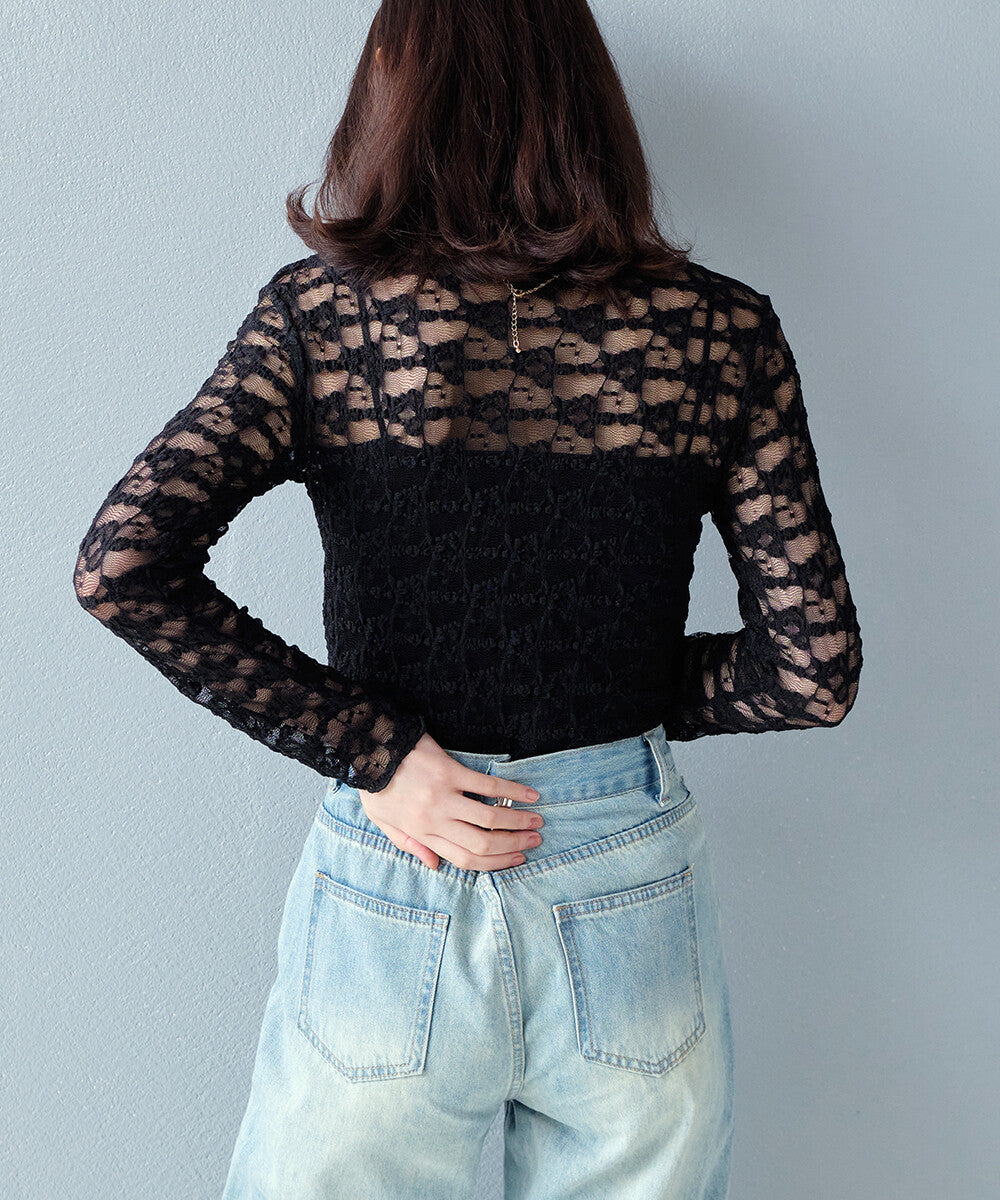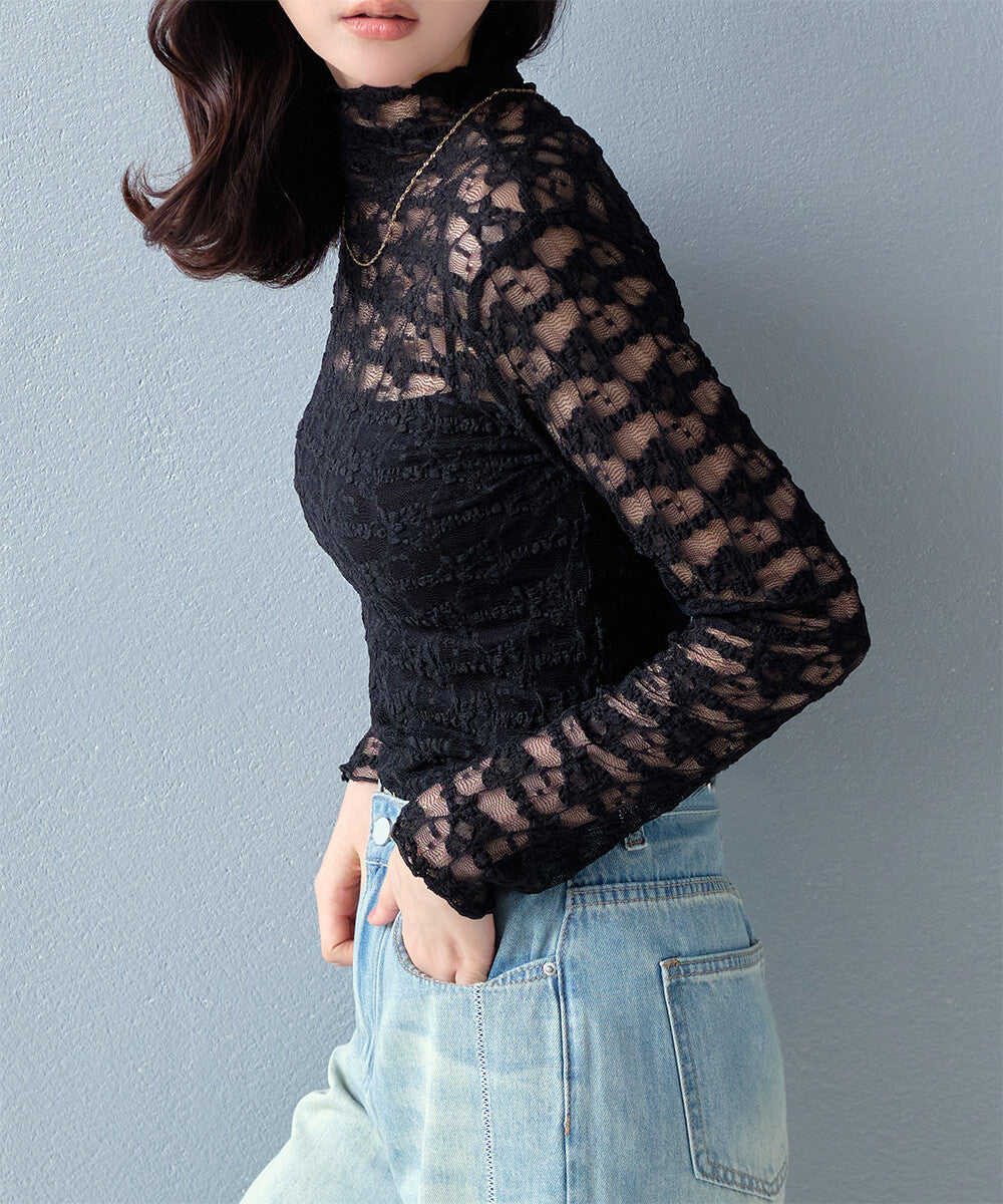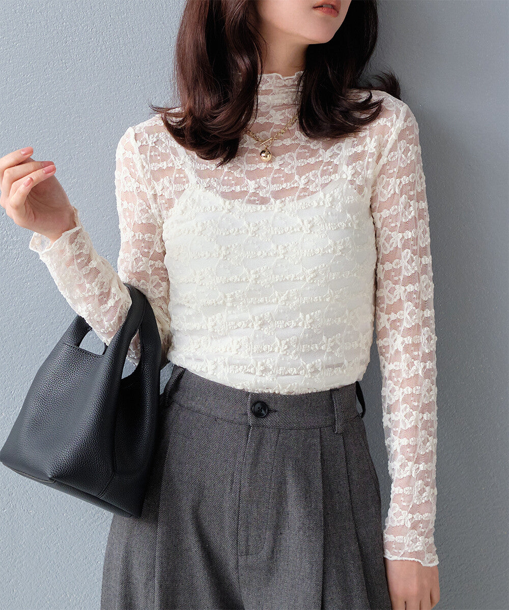 /秋冬/上衣/女裝/蕾絲/剪裁和縫紉/透視/內衣/長袖/下裝領口/層疊/秋冬/柔和蕾絲上衣