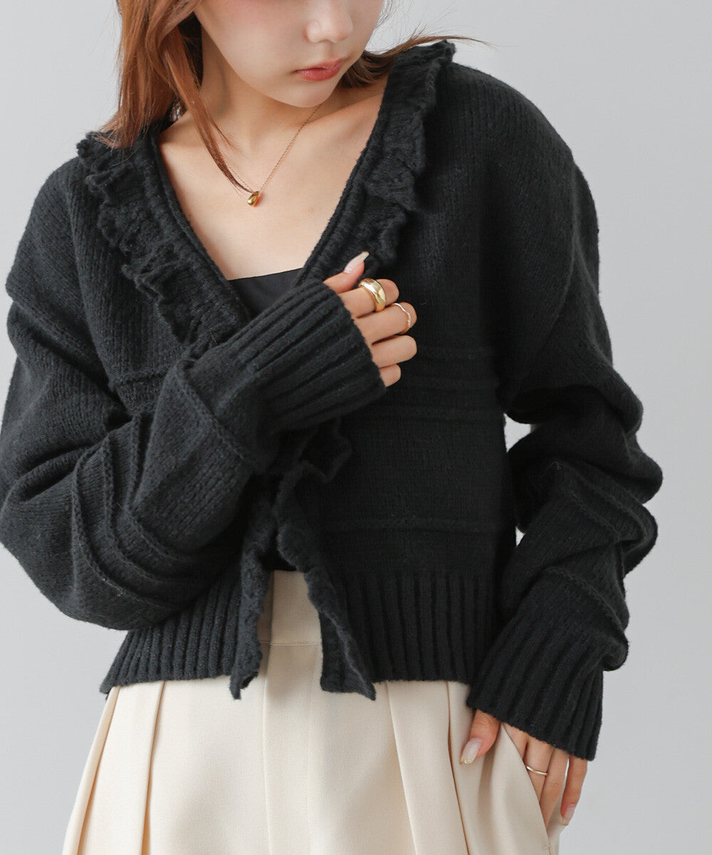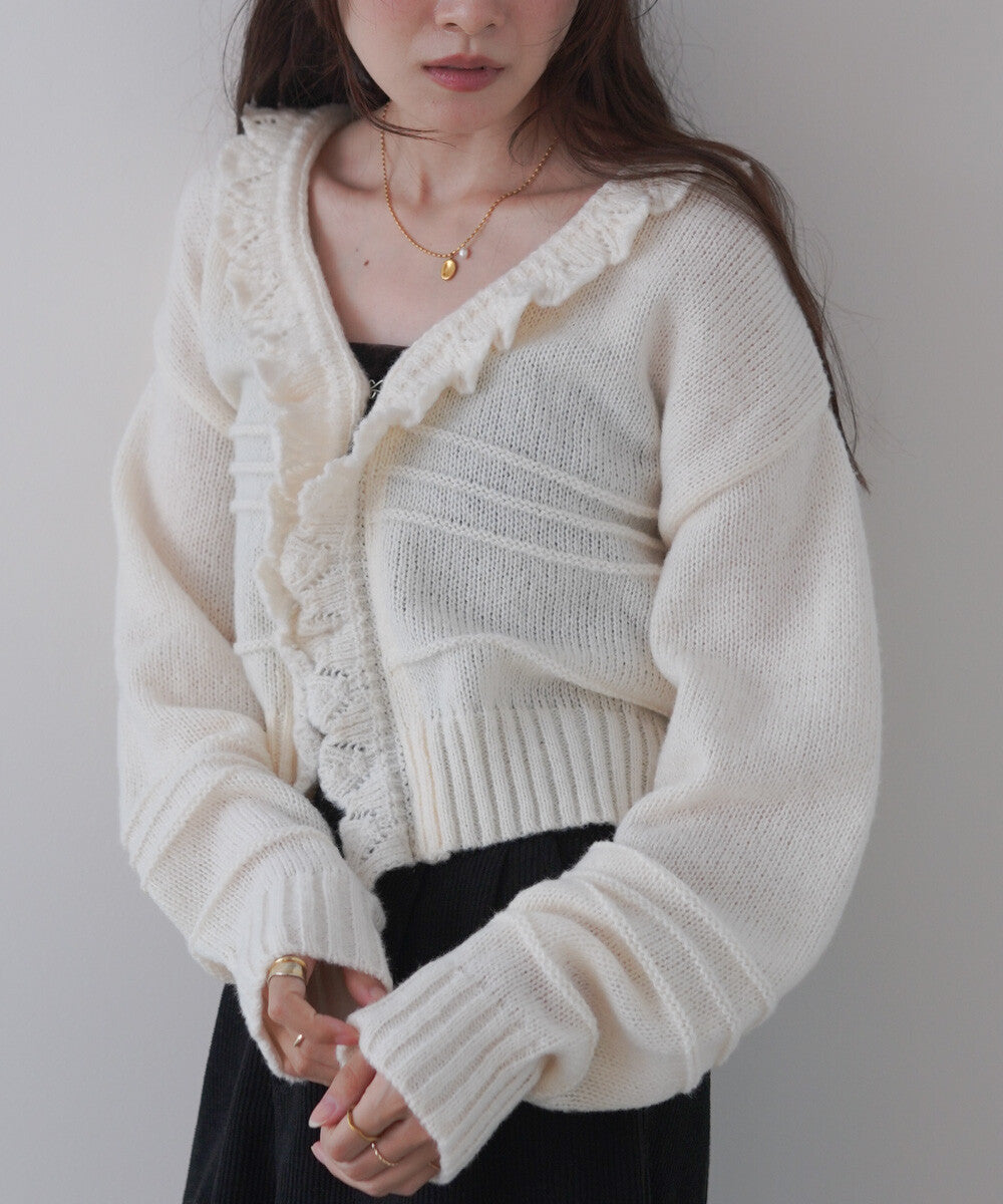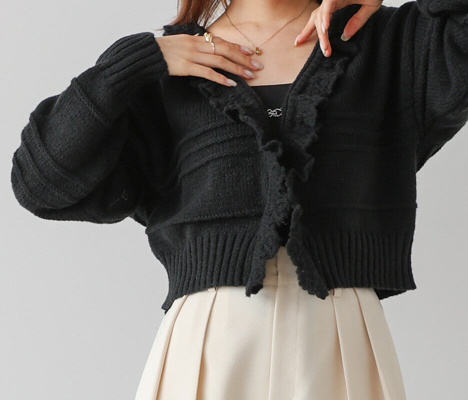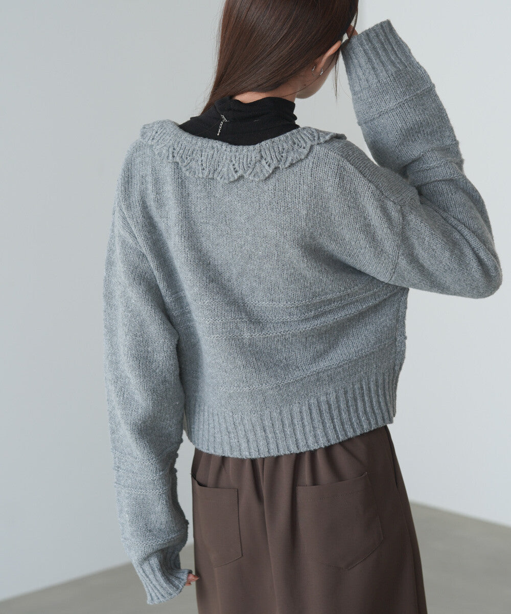日本JP直送 【2025秋冬新品】拉絨荷葉邊領鉤開襟衫 {11月30截單;預計10-14工作天發貨}