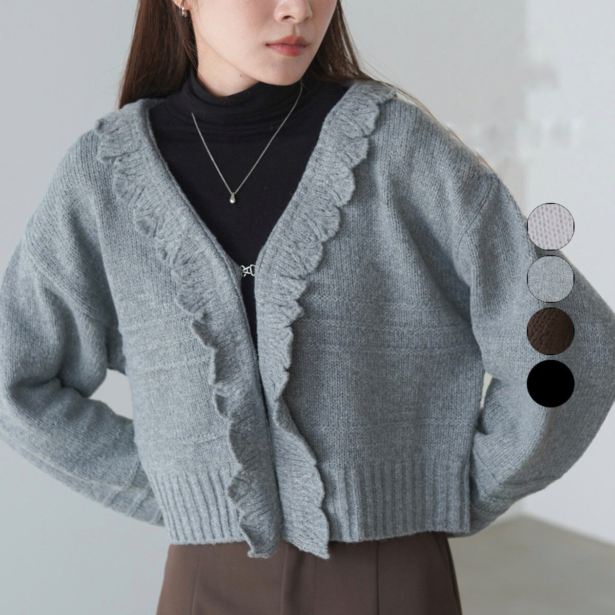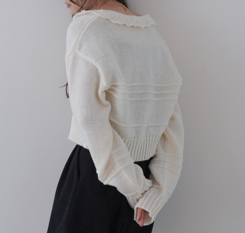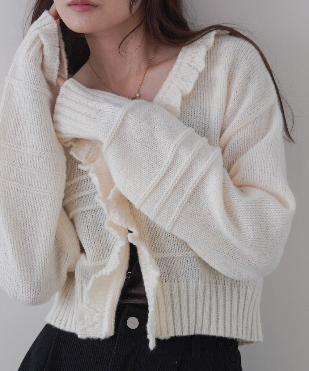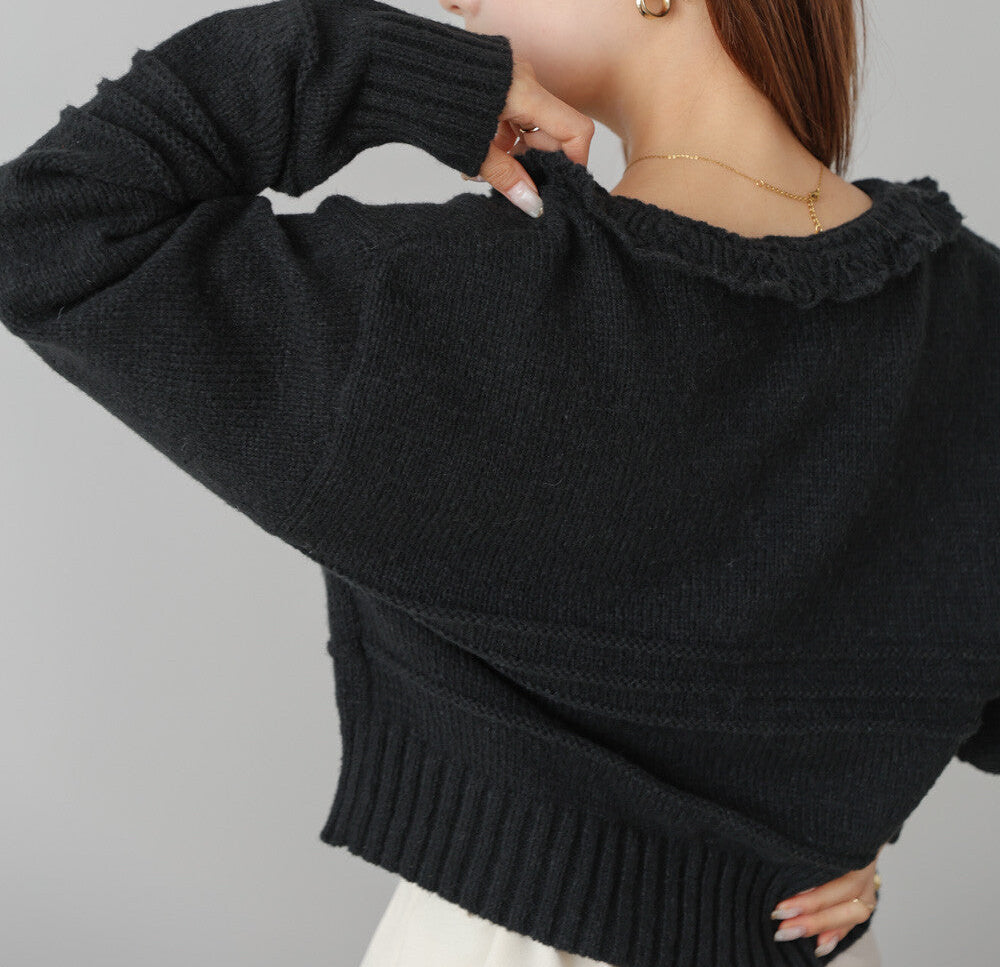 日本JP直送 【2025秋冬新品】拉絨荷葉邊領鉤開襟衫 {11月30截單;預計10-14工作天發貨}