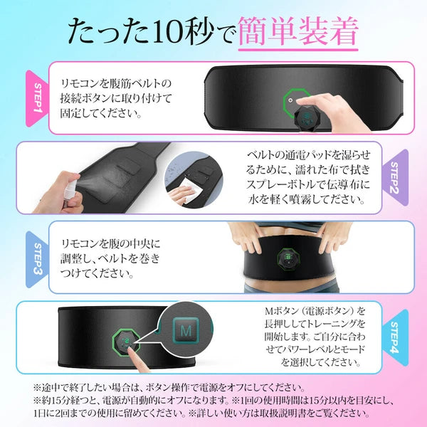 日本JP直送 EMS腹肌帶 無需消耗凝膠片 腹肌墊 肌肉訓練 肌肉刺激 EMS腹肌帶 強力模式 USB可充電 {10月30截單;預計10-14 工作天發貨}