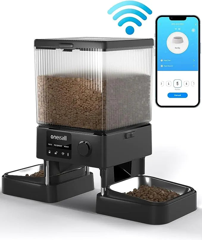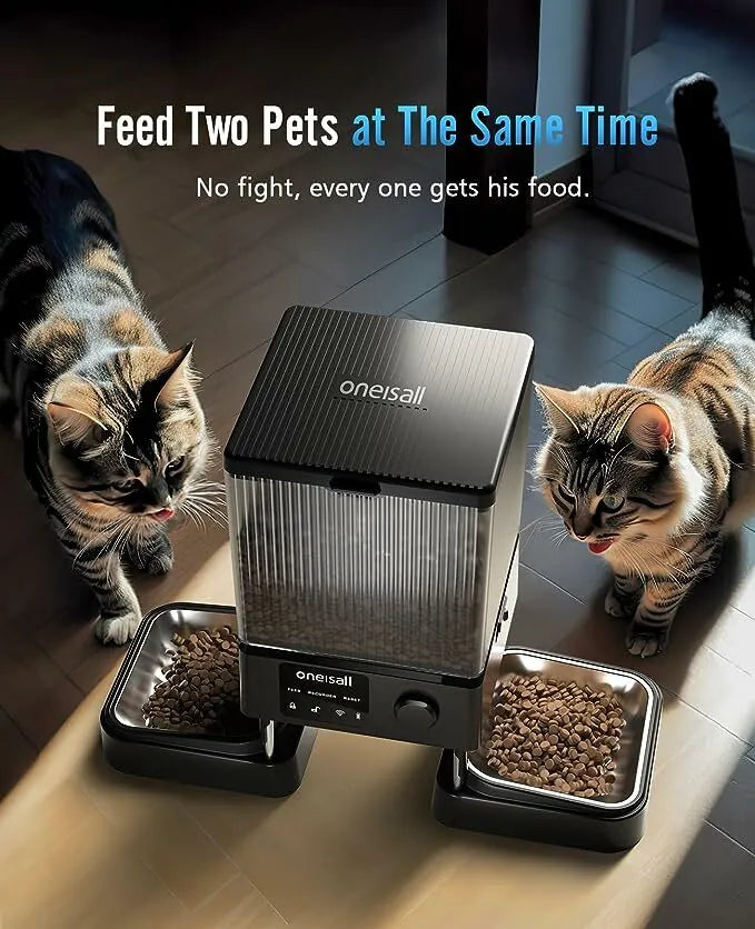 Oneisall 寵物自動餵食器 - 雙碗版:智能、可靠的寵物照護夥伴 🐾💕