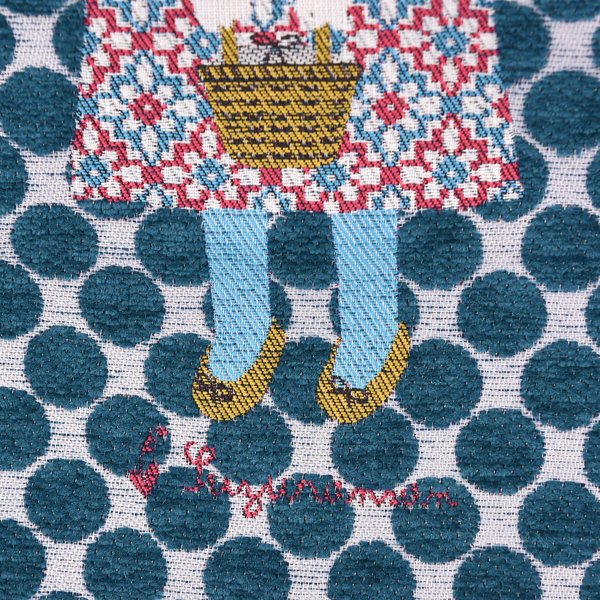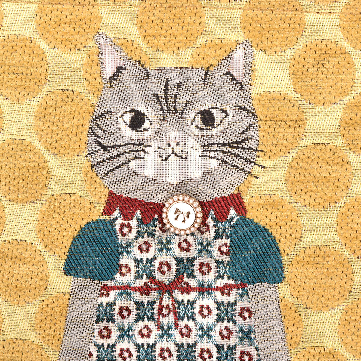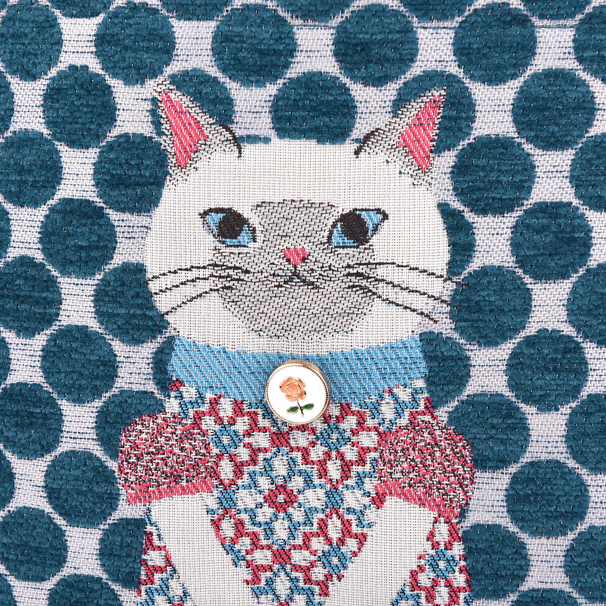 雪尼爾(Chenille)在法文中意為「毛毛蟲」。顧名思義,它是一種蓬鬆柔軟的面料,由長長的、毛茸茸的馬海毛紗線織成。天鵝絨般的表面帶有微妙的光澤,色彩飽滿而豐富。精心打扮的貓咪圖案透過提花工藝巧妙地織入這種底布中。